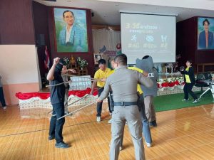 6.ได้ร่วมกับคณะครูประกอบกำลังฝึกซ้อมยุทธวิธีการใช้ไม้ง่ามจับกุมคนร้าย