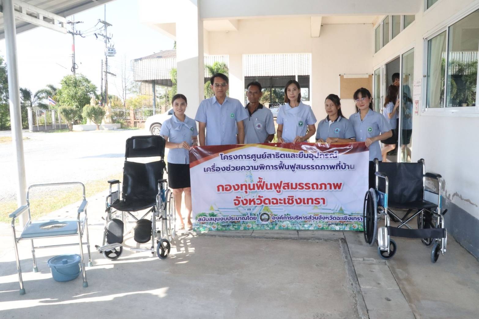 โดยก่อนหน้านี้ได้ดำเนินการส่งมอบอุปกรณ์เครื่องช่วยความพิการไปยังศูนย์สาธิตและยืมอุปกรณ์เครื่องช่วยความพิการฟื้นฟูสมรรถภาพที่บ้านในโรงพยาบาลประจำอำเภอ และโรงพยาบาลศูนย์ในจังหวัดฉะเชิงเทรา เพื่อให้บริการแก่ผู้พิการ ผู้สูงอายุ ผู้ป่วยที่อยู่ในระยะกึ่งเฉียบพลัน และผู้ที่มีภาวะพึ่งพิงในจังหวัดฉะเชิงเทรา ซึ่งศูนย์สาธิตและยืมอุปกรณ์เครื่องช่วยความพิการฟื้นฟูสมรรถภาพที่บ้าน มีอุปกรณ์ฯให้ยืม จำนวน 15 รายการ ได้แก่