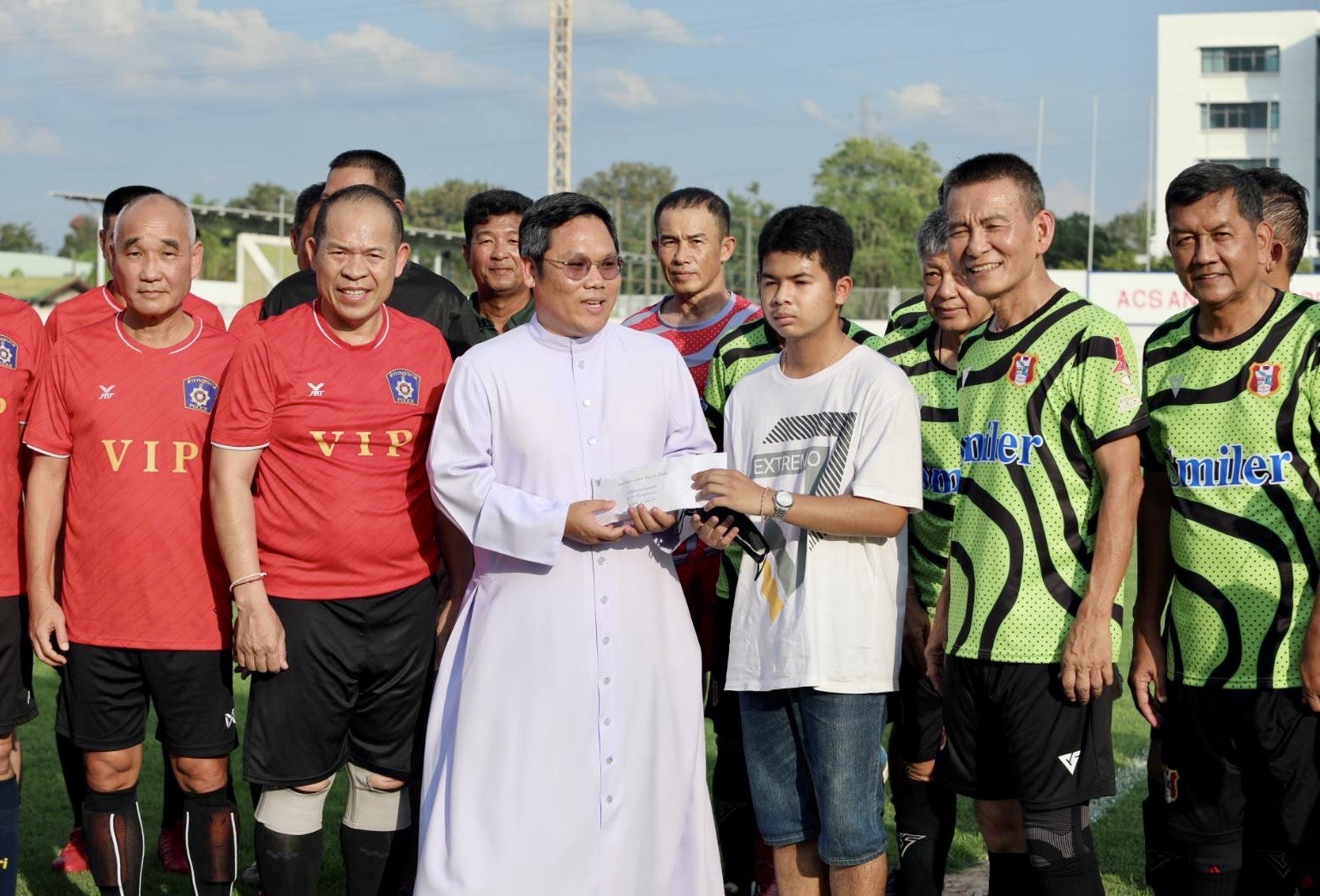 โดยการแข่งขันฟุตบอล 3 เส้า กระชับมิตร นายสนธยา คุณปลื้ม อดีตรมว.วุฒนธรรม ได้มอบถ้วยรางวัลชนะเลิศให้กับทีมชนะเลิศการแข่งขัน โดยฝ่ายจัดการแข่งขันได้รับเงินบริจาคเพื่อช่วยเหลือ
