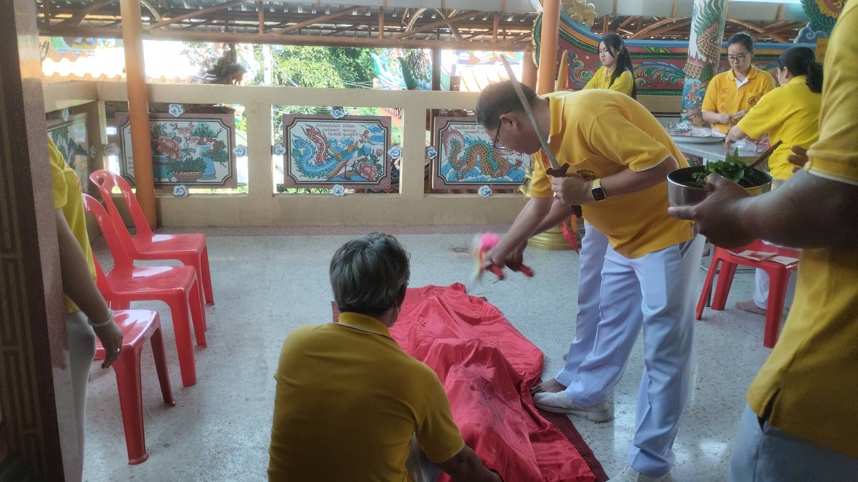 เมื่อเวลา 13.30 น. วันที่ 7 ม.ค. 2567 ที่พุทธสมาคมเพียวเยี้ยงไท้ศรีราชา ริมถนนสายเก้ากิโล ม.3 ต.สุรศักดิ์ อ.ศรีราชา จ.ชลบุรี ได้มีประชาชนทั้งชาวไทยและชาวไทยเชื้อสายจีนทั้งคนโตและเด็กจำนวนมากที่เกิดปีชง ในปีพุทธศักราช 2567 หรือผู้ที่เกิดในปีมะโรง ปีเถาะ ปีระกา ปีจอ และผู้ที่มีอายุลงท้ายด้วยเลข 3,6,9 จำนวนมากต่างพากันมานั่งรอเข้าแถวเพื่อทำพิธีสะเดาะเคราะห์แก้ปีชง และสะเดาะเคราะห์ใหญ่ เพื่อให้พ้นทุกข์ภัยตลอดปีและเพื่อความเป็นสิริมงคลแก่ตนเองและครอบครัวทำมาค้าขึ้นตลอดปีและไม่มีภยันตรายใดๆ มา กล้ำกราย โดยปีชงมาจากความเชื่อทางโหราศาสตร์ของจีน โดยเกี่ยวข้องกับองค์เทพไท้ส่วย หรือที่รู้จักกันดีในนาม “เทพเจ้าผู้คุ้มครองดวงชะตา”