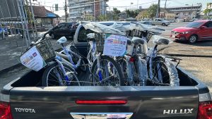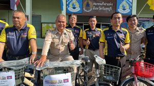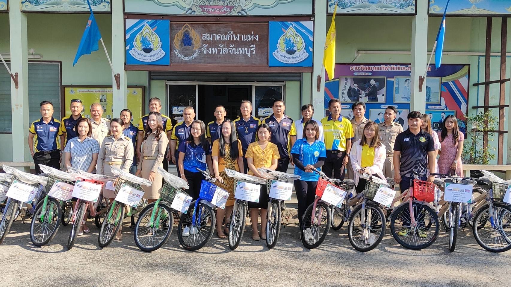ณ บริเวณหน้าที่ทำการ สมาคมกีฬาแห่งจังหวัดจันทบุรี นาเกียรติศักดิ์ พูนเพิ่ม เลขานุการสมาคม การค้าและการท่องเที่ยวชายแดนไทย-กัมพูชา จังหวัดจันทบุรี เป็นตัวแทนของ ดร.รัฐวิทย์ ตั้งเกียรติพชร นายกสมาคมการค้าและการท่องเที่ยวชายแดนไทย -กัมพูชา จังหวัดจันทบุรี และนายกสมาคมกีฬาแห่งจังหวัดจันทบุรี ได้นำคณะชายแดนกรุ๊ป ร่วมกันมอบรถจักรยานให้กับคณะครู จากโรงเรียนต่างๆ ในเขตพื้นที่การศึกษา จังหวัดจันทบุรี เพื่อนำไปใช้จัดกิจกรรมเป็นของขวัญในงานวันเด็กแห่งชาติ ที่จะมีขึ้นในวันเสาร์ที่ 13 มกราคม 2567 นี้ จำนวนทั้งหมด 80 คัน