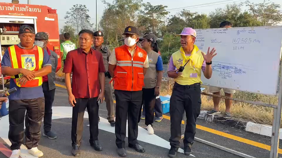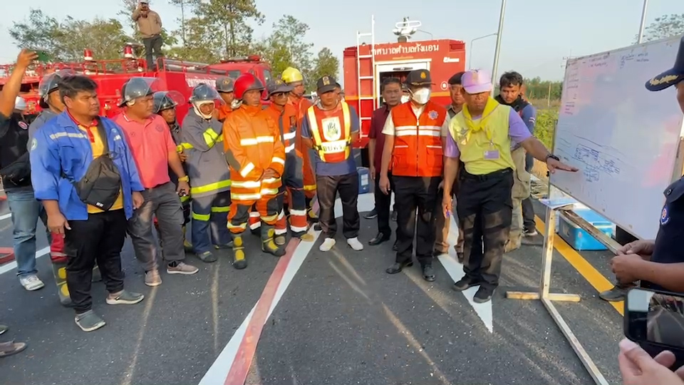 วันที่ 10 ม.ค. 2567 ผู้สื่อข่าวรายงานถึงความคืบหน้า กรณี เมื่อเวลาประมาณ 10.50 น.ที่ผ่านมา พ.ต.ต.ธนากร ใจหาญ พนักงวานสอบสวนเวร สภ.ปราสาท อ.ปราสาท จ.สุรินทร์ ได้รับแจ้งว่าเกิดอุบัติเหตุรถพ่วง 18 ล้อ บรรทุกน้ำมันเชื้อเพลิง เสียหลักลงข้าง ชนอัดกับต้นไม้ บนทาง ทล.หมายเลข 24 โชคชัย-เดชอุดม บ.หนองทนง ต.บ้านไทร อ.ปราสาท จ.สุรินทร์ จึงประสาน จนท.กู้ชีพ-กู้ภัยในพื้นที่รีบเดินทางไปยังที่เกิดเหตุ พบรถบรรทุก 18 ล้อ หมายเลขทะเบียน 70-1296 ศรีสะเกษ และลูกพ่วง 70-9233 ศรีสะเกษ เป็นรถของ หจก.แห่งหนึ่ง ใน อ.กันทรลักษ์ จ.ศรีสะเกษ ประเภทรถบรรทุกน้ำมันเชื้อเพลิงดีเซลจำนวน 24,000 ลิตร และน้ำมันเบนซิน จำนวน 16,000 ลิตร เสียหลักลงข้างทาง ในสภาพนอนตะแคง หลังชนต้นไม้หักโค่น พบผู้ได้รับบาดเจ็บเป็นชาย 1 ราย ทราบชื่อคือ นายทิวา บุญเลิศ อายุ 36 ปี ชาว ต.ศรีแก้ว อ.ศรีรัตนะจ.ศรีสะเกษ มีอาการปวดหลังและอาเจียน จนท.กู้ชีพ-กู้ภัย จึงรีบนำตัวออกมาจากที่เกิดเหตุเพื่อปฐมพยาบาลให้ไกลออกมาจากรถบรรทุกน้ำมันที่สุด เกรงจะเกิดการระเบิดได้ เนื่องจากที่เกิดเหตุมีน้ำมันรั่วไหลจำนวนมากพร้อมได้ประสานรถบรรทุกน้ำดับเพลิง จาก อบต.บ้านไทร เทศบาลกังแอน, อบต.ตาเบา, เทศบาลกันตวจระมวล, อบต.สะกาด และรถอาสากู้ชีพบ้านไทร,รถพยาบาลกู้ภัยสว่างจรรยาธรรม จุด อ.ปราสาท,รถ น.เขต กู้ภัยมังกร เข้าสแตนบาย เตรียมความพร้อมเข้ากู้รถประสบเหตุ ซึ่งขณะนี้ อยู่ระหว่างรอรถฉีดโฟมจากหน่วยป้องกันบรรเทาสาธารณภัยเทศบาลเมืองสุรินทร์ และรถเครนเข้ามาสนับสนุน ฉีดป้องกันไฟลุกที่จะเป็นสาเหตุการระเบิดได้ ซึ่ง จนท.ต้องปิดกั้นกรวย เพื่อปิดเส้นทางให้รถยนต์ของประชาชนที่สัญจรไปมาวิ่งได้เพียงเลนเดียว เพื่อเลี่ยงอันตรายที่อาจจะเกิดขึ้นทุกขณะ ทั้งนี้หน่วยดับเพลิงภาคอีสานกำลังเดินทางเข้ามาร่วมวางแผนในการกู้รถบรรทุกน้ำมันคันดังกล่าวร่วมกัน คาดว่าจะใช้เวลาหลายชั่วโมงหลังจากนี้