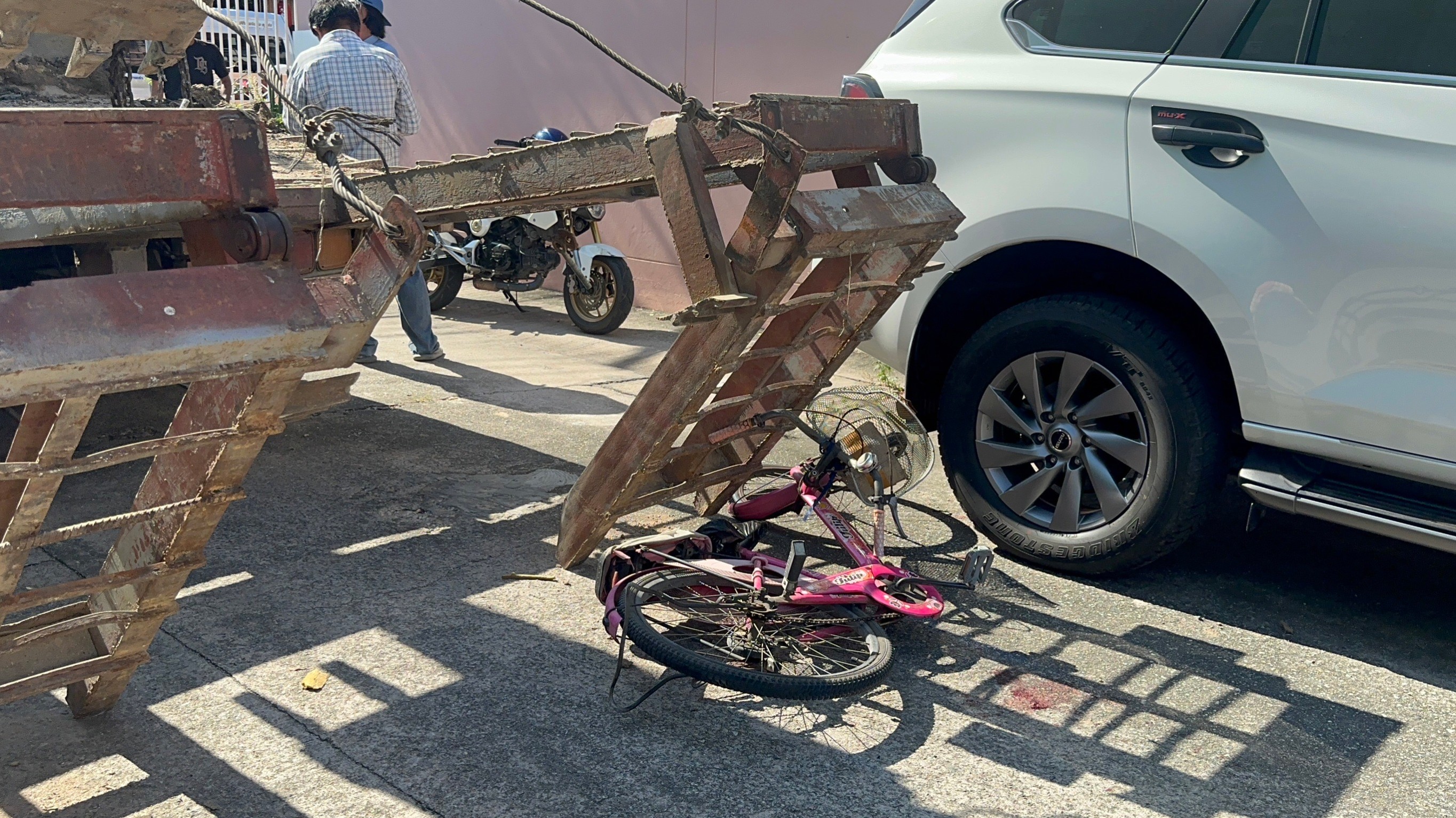 เมื่อเวลา 10:00 น. วันที่ 16 มกราคม 66 กู้ภัยไตรคุณธรรมได้รับแจ้งเหตุ ว่ามีบุคคลถูก สะพานทางลงของรถบรรทุกรถแม็คโครหล่นทับได้รับบาดเจ็บ ที่ตำบลนาป่าหมู่ ที่12 ซอย 13 / 1 หมู่บ้านอิสเทิร์นแลนด์ จึงออกไปตรวจสอบพบผู้บาดเจ็บเป็นหญิงทราบชื่อว่านางสติยา ศิริธรรมอายุ 66ปี ได้รับบาดเจ็บจากการถูกเหล็กท้ายรถหล่นใส่ศีรษะ เป็นแผลฉกรรจ์ ที่ศีรษะ โดยมีชาวบ้านที่ เห็น เหตุการณ์ได้ช่วยเหลือในเบื้องต้น ในที่เกิดเหตุยังพบรถจักรยานหนึ่งคันสภาพล้อบิดเบี้ยวพังเสียหาย