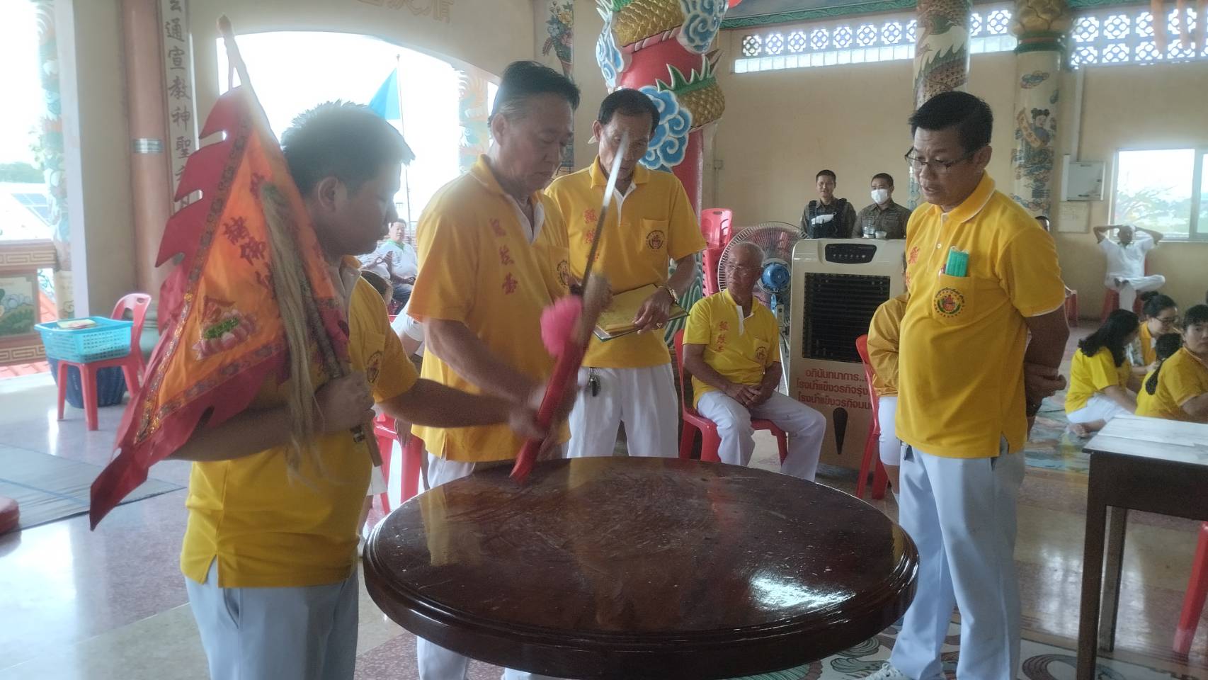 โดยองค์โป้ยเซียนโจ้วซือได้ประทับทรงใช้ไม้จี้ที่ศีรษะเพื่อเสริมดวงชะตาสะเดาะเคราะห์แก่ผู้เกิดปีชง ตามตำราจีนเชื่อว่า ในปีชงผู้ที่เกิดปีชงจะประสบเคราะห์ภัยรุมเร้ามากกว่าในเวลาปกติธรรมดา แม้ว่าจะไม่ได้เป็นเรื่องของกรรมเด่นชัด แต่ก็เชื่อว่าเมื่อดวงชะตาอ่อนกำลังลง กรรมและเคราะห์ย่อมมีกำลังแรงขึ้น ในปีชง จึงต้องเร่งทำบุญสะเดาะเคราะห์ หลายคนไม่เคยเกิดอุบัติเหตุก็มาเกิดเหตุในปีชง บางคนค้าขายขาดทุนในปีชง บางคนพบแต่อุปสรรคและทุกข์ภัยมาก จึงพากันมาเสริมดวงชะตาสะเดาะเคราะห์กันในปีชงเพื่อความเป็นสิริมงคลแก่ตนเองและครอบครัว