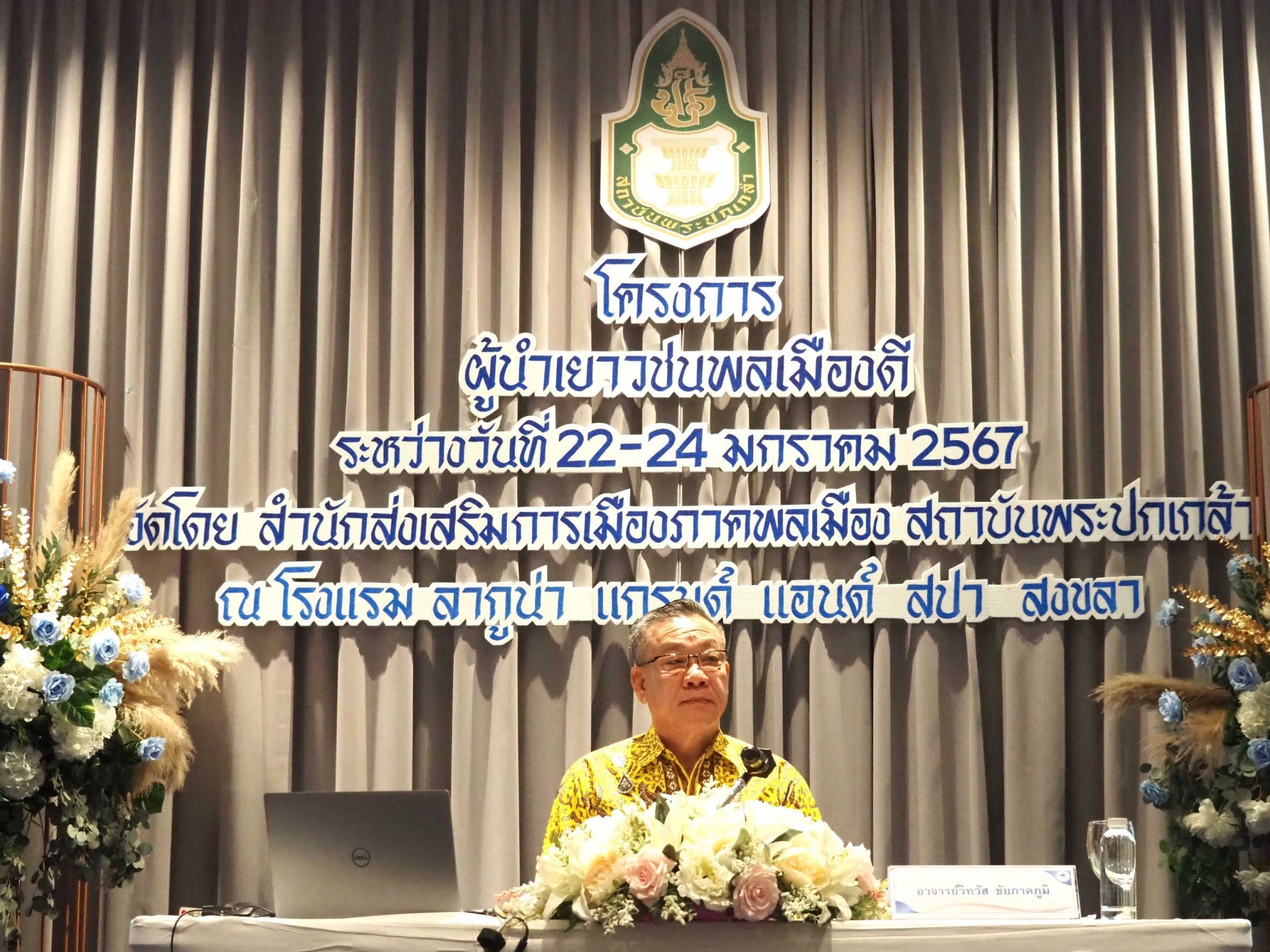 วันที่ 22 ม.ค.67 สถาบันพระปกเกล้า จัดอบรมโครงการผู้นำเยาวชนพลเมืองดี จ.สงขลา ได้รับเกียรติจาก อ.วิทวัส ชัยภาคภูมิ เลขาธิการสถาบันพระปกเกล้า บรรยายเรื่อง “พลเมืองดี วิถีประชาธิปไตย” นอกจากนี้ ยังมีกิจกรรมเยาวชนสัมพันธ์ Team Building และการบรรยายเรื่อง “ดิจิทัลกับการพัฒนาสังคมและมรดกทางวัฒนธรรม” โดย อาจารย์กู้เกียรติ ภูมิรัตน์ ที่ปรึกษาเลขาธิการด้านการส่งเสริมการเมืองภาคพลเมือง