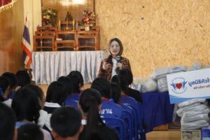 นางเธียรรัตน์ กล่าวว่า ในวันนี้ดิฉันในนามมูลนิธิหัวใจบริสุทธิ์ได้ร่วมมือกับ คุณกุลพรภัสร์ วงศ์มาจารภิญญา ประธานบริหารกลุ่มไทยสมายล์ กรุ๊ป นำเครื่องอุปโภคบริโภค อาทิ เครื่องเขียน อุปกรณ์การเรียน อุปกรณ์กีฬา เสื้อผ้า ผ้าห่ม มามอบให้กับน้องๆ นักเรียนที่โรงเรียนบ้านห้วยหานแห่งนี้ นอกจากนี้ ยังมีหน่วยงานในสังกัดกระทรวงแรงงานจังหวัดเชียงราย และสำนักอุทยานภูชี้ฟ้า นำกิจกรรมต่างๆ มาให้บริการ