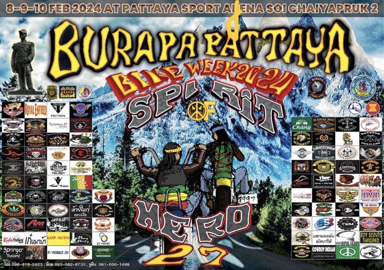ทั้งนี้ เมืองพัทยา ได้ร่วมกับสมาคมบูรพามอเตอร์ไซค์เคิลคลับ กำหนดจัดโครงการสัปดาห์มอไซค์และเสียงเพลงแห่งเสรีภาพ ครั้งที่ 27 “BURAPA PATTAYA BIKE WEEK & SPIRIT OF HEROES 2024” ระหว่างวันที่ 8-10 กุมภาพันธ์ 2567 นี้ ที่บริเวณสาธารณะเมืองพัทยา ศูนย์กีฬาแห่งชาติภาคตะวันออก ซอยชัยพฤกษ์ 2 เมืองพัทยา จ.ชลบุรี