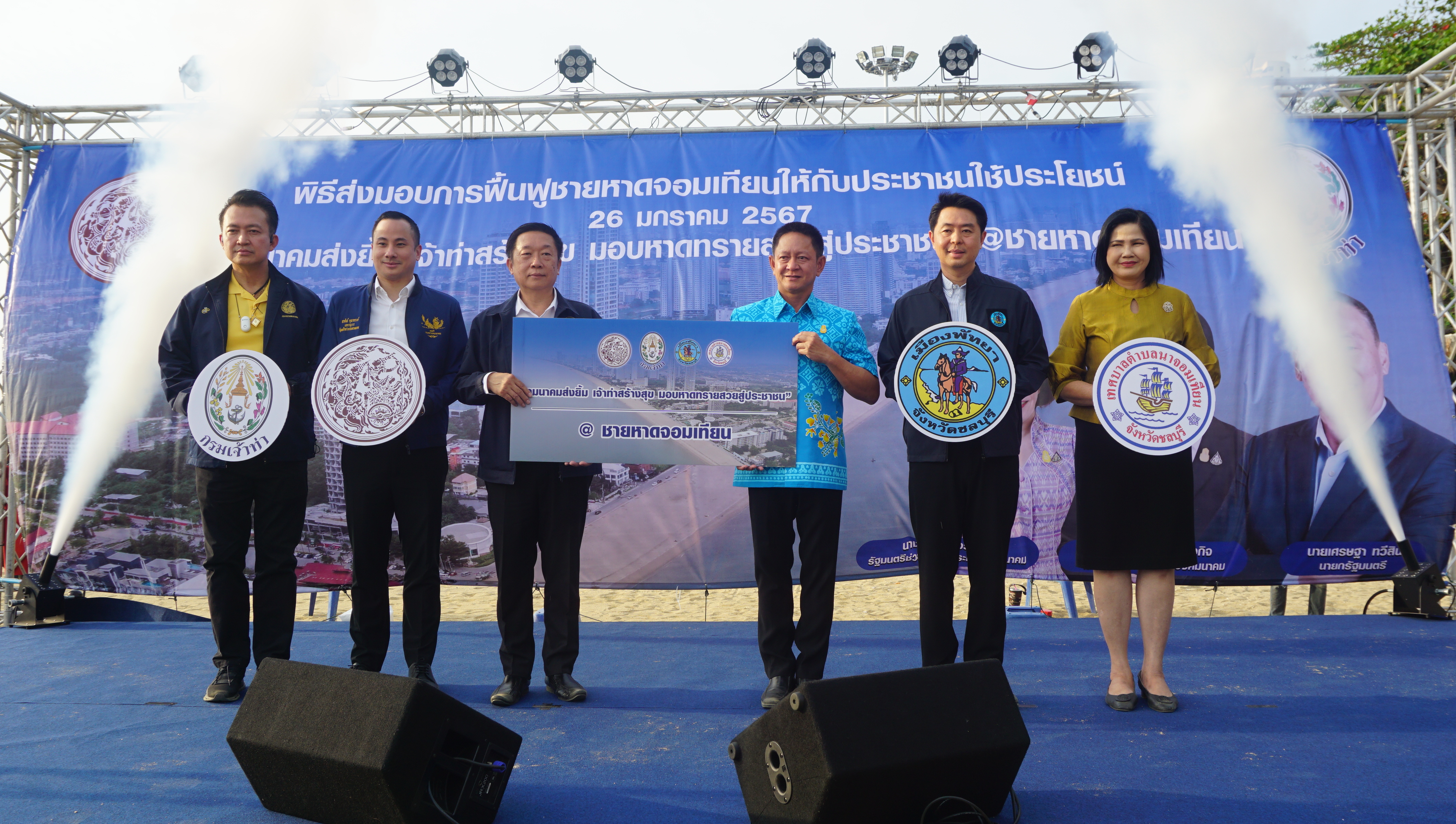 วันที่ 26 ม.ค.67 ที่บริเวณชายหาดจอมเทียน จ.ชลบุรี กรมเจ้าท่า กระทรวงคมนาคม จัดกิจกรรม “คมนาคมส่งยิ้ม เจ้าท่าสร้างสุข มอบหาดทรายสวยสู่ประชาชน” @ ชายหาดจอมเทียน เพื่อมอบเป็นของขวัญปีใหม่ 2567 ให้ประชาชน ตามนโยบาย “คมนาคมเพื่อความอุดมสุขของประชาชน” ของนายสุริยะ จึงรุ่งเรืองกิจ รัฐมนตรีว่าการกระทรวงคมนาคม และนโยบาย “ราชรถยิ้ม” ของ ดร.มนพร เจริญศรี รัฐมนตรีช่วยว่าการกระทรวงคมนาคม โดยมี นายทวีศักดิ์ อนรรฆพันธ์ ที่ปรึกษารัฐมนตรีช่วยว่าการกระทรวงคมนาคม เป็นประธานเปิดกิจกรรม พร้อมด้วย นายสรพันธ์ คุณากรวงศ์ ผู้ช่วยเลขานุการกระทรวงคมนาคม, นายภูริพัฒน์ ธีระกุลพิศุทธิ์ รองอธิบดีกรมเจ้าท่าด้านปลอดภัย นายภัควัต ขันธหิรัญ นายอำเภอสัตหีบ นายปรเมศวร์ งามพิเชษฐ์ นายกเมืองพัทยา, นางสาวระพีพรรณ รัตนเหลี่ยม นายกเทศมนตรีเทศบาลตำบลนาจอมเทียน และผู้บริหารหน่วยราชการในพื้นที่ เข้าร่วม