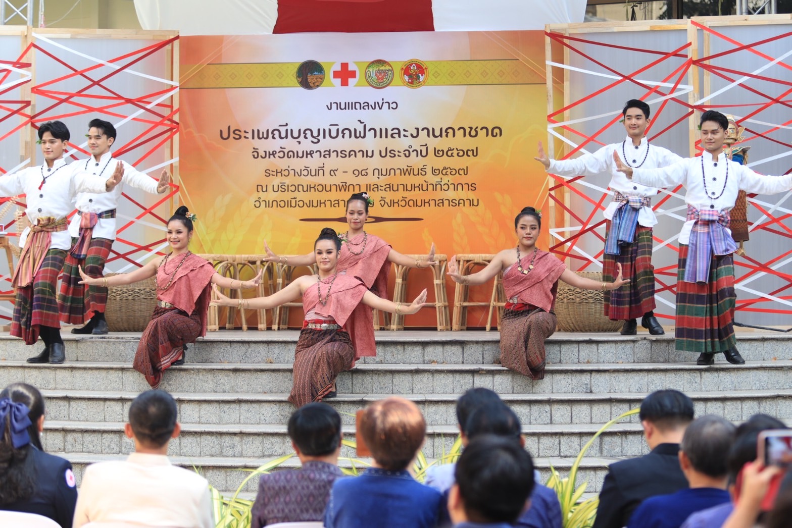 ผู้สื่อข่าวรายงานว่า เมื่อวันที่ 2 ก.พ. 2567 ที่ลานจตุรมุข ศาลากลางจังหวัดมหาสารคาม นายวิบูรณ์ แววบัณฑิต ผู้ว่าราชการจังหวัดมหาสารคาม เป็นประธานแถลงข่าวการจัดงานประเพณีบุญเบิกฟ้าและกาชาดจังหวัดมหาสารคาม ประจำปี 2567 ระหว่างวันที่ 9-18 กุมภาพันธ์ 2567 รวม 10 วัน 10 คืน ณ สนามหน้าที่ว่าการอำเภอเมืองมหาสารคาม เพื่อเป็นการอนุรักษ์ศิลปวัฒนธรรม และฟื้นฟูประเพณีพื้นบ้าน ของชาวอีสานและส่งเสริมการท่องเที่ยวของจังหวัดมหาสารคามให้เป็นที่รู้จักอย่างแพร่หลาย โดยการจัด-งานดังกล่าว จะจัดเมื่อถึงวันขึ้น 3 ค่ำ เดือน 3 ของทุกปี เพราะมีความเชื่อถือ สืบต่อกันมาแต่โบราณว่า ฟ้าจะไขประตูฝนลงมาสู่โลกมนุษย์ เป็นวันที่ชาวโลก มีความอิ่ม และมีความสมบูรณ์ที่สุด