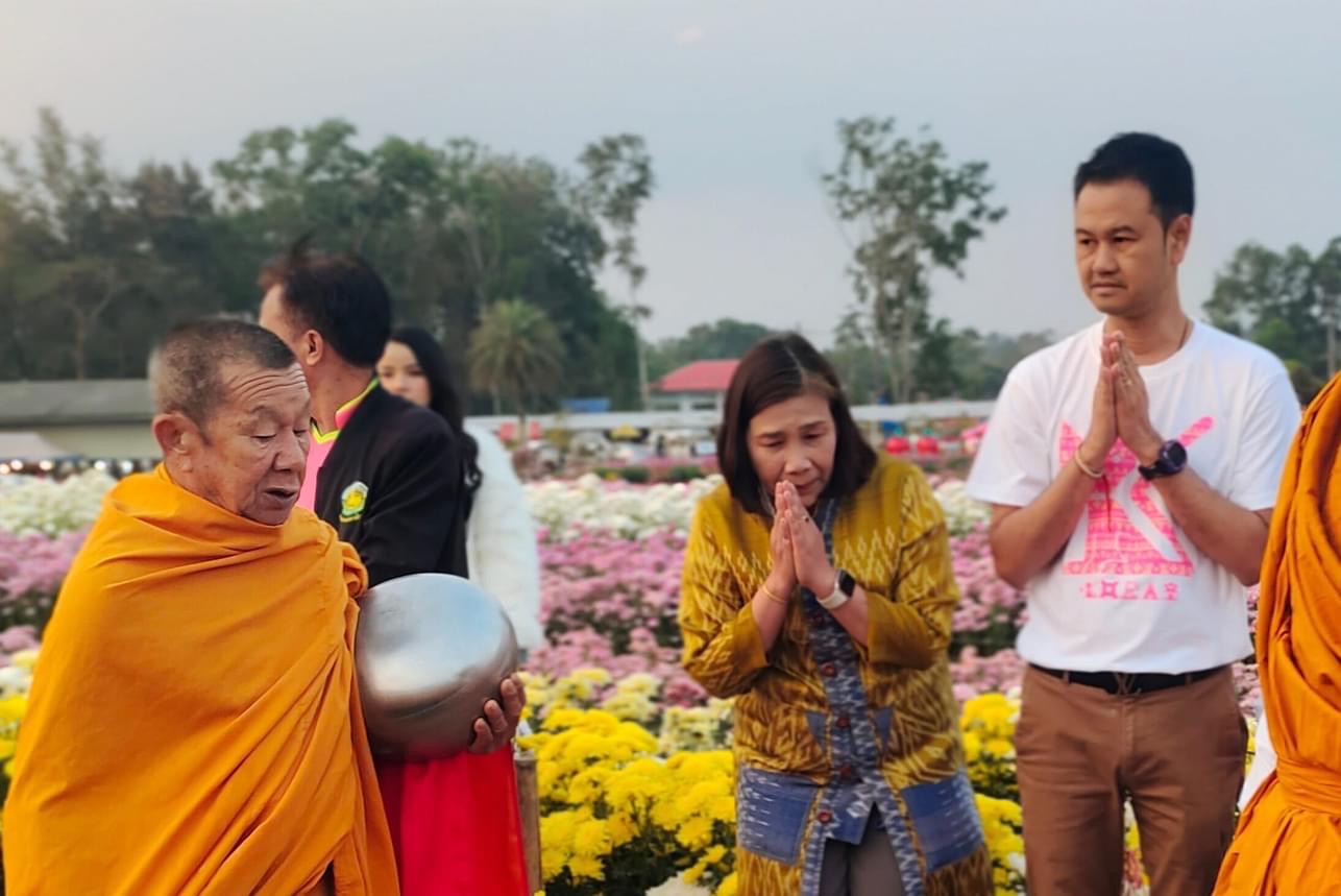 วันที่ 11 กุมภาพันธ์ 2567 ที่แปลงดอกเบญจมาศ อบต.ไทยสามอัคคี อ.วังน้ำเขียว จ.นครราชสีมา นายจาตุรนต์ รัศมีวานิช บิ๊กบดีกรมการท่องเที่ยวแรงดึงนายสุรพันธ์ ศิลปสุวรรณ รองผู้ว่าราชการจังหวัดนครราชสีมา นายสมภพ มุก ดาสนิท นายอำเภอวังน้ำเขียว นางรุ่งทิพย์บุกขุนทด ผอ.ททท.นครราชสีมานายชุณห์ สิริชัยคีรีโกศล สจ.เขตวังน้ำเขียว และนายประกอบ สิริวงศ์เทาสะอาดนายกอบต.ไทยสามัคคี ร่วมกับประชาชนและผู้ร่วมงานกว่า 1,000 คน ตักบาตรกลางดอกเบญจมาศบานในม่านหมอก ครั้งที่ 22