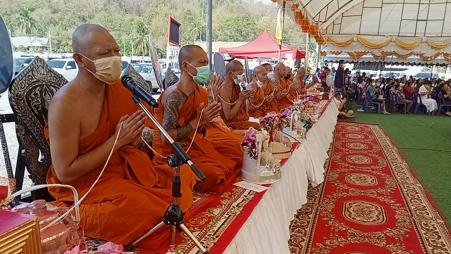 โดยมีพระคณาจารย์นั่งปรกอธิษฐานจิต นำโดย พระครูสุภัทรธรรมธาดา (หลวงพ่อบุญรอด) วัดพันเสด็จใน พระครูสาทรวรกิตติ์ (หลวงพ่อบุญสืบ) วัดพันเสด็จนอก พระครูปลัดอังกูล โชตโก เลขานุการเจ้าคณะตำบลบึง เจ้าอาวาสวัดเขาบางพระ โดยได้นิมนต์พระสงฆ์มาเจริญพระพุทธมนต์ในพิธี และได้ทำพิธีเททองหล่อที่ปะรำพิธีบริเวณลานจอดรถใกล้กับศาลาการเปรียญของวัดเขาช่องลม ซึ่งก่อนทำพิธีเททองนั้นทางวัดเขาช่องลมได้มอบหมายให้ นายสิริวิชฐ์ อำไพวงษ์ นายกอบต.บ่อวิน ประธานฝ่ายฆราวาส ได้มอบเงินสนับสนุนให้กับ นายนพรัตน์ ศรีพรหม นายอำเภอศรีราชา เพื่อนำไปบูรณะปฏิสังขรหอพระ ที่ว่าการอำเภอศรีราชา จำนวน290,000 บาท