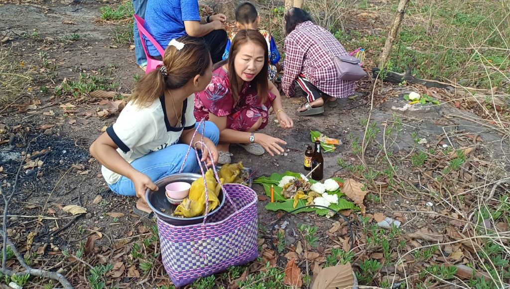 วันที่ 26 เม.ย.2566 ขณะที่จ.ชัยภูมิ สถานการณ์ภัยแล้งปีนี้เริ่มส่งสัญญาณมาเยือนแล้ว ทำให้ชาวบ้านในหลายพื้นที่เริ่มขาดแคลนน้ำเพื่อประกอบอาชีพทำการเกษตรตามมาอีกจำนวนมาก ขณะที่บริเวณศาลเจ้าพ่อกำนันอ้อง ในหมู่บ้านกระจวน หมู่ 4 ต.โคกสะอาด อ.หนองบัวระเหว จ.ชัยภูมิ ได้มีชาวบ้านกว่า 200 คน ทั้งผู้ใหญ่และเด็กต่างนำเครื่องเซ่นไหว้ ดอกไม้ ธูปเทียน หมากพลู อาหารคาวหวาน มารวมกันที่บริเวณศาลปู่ตาประจำหมู่บ้านดังกล่าว เพื่อร่วมกันทำพิธีไหว้บวงสรวงขอพรกันจำนวนมากต่อเนื่องไม่ขาดสาย เพื่อให้ได้ในสิ่งที่ตนเองต้องการมากที่สุดในปีนี้ คืออยากให้ฝนตกลงมาช่วยเติมน้ำในสระ คู คลอง ภาชนะเก็บกักที่มีในชุมชน ซึ่งช่วงนี้ที่เริ่มเข้าสู่ช่วงฤดูแล้งเต็มตัวแล้วเริ่มทำให้ประชาชนในพื้นที่ขาดแคลนน้ำเพื่อประกอบอาชีพทางการเกษตร การอุปโภค บริโภค เนื่องจากที่ผ่านมาในชุมชนแห่งนี้แล้งหนักมาต่อเนื่องตั้งแต่ต้นปีที่ผ่านมา ไม่มีฝนตกลงมาเติมน้ำตามแหล่งน้ำเก็บกักที่มีทั้งหมดไว้ได้เลย ทำให้ชาวบ้านต้องนำสิ่งของตามความเชื่อและต้องทำเป็นประเพณีปฏิบัติกันมายาวนานด้วยการพากันออกมาทำพิธีเซ่นไหว้ศาลปู่ตาประจำหมู่บ้านแห่งนี้มาเป็นประจำทุกปี ซึ่งในปีนี้ต้องมีการพากันออกมาทำพิธีเร็วกว่าทุกปี เพื่อกราบไหว้ขอพรขอโชคลาภ ให้ฝนได้ตกลงมาเร็วขึ้นกว่าทุกปี