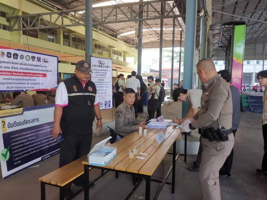 วันที่ 13 ก.พ.67 นายรุ่งเรือง สูยะนันทน์ รองผู้อำนวยการฝ่ายพัฒนากิจการนักเรียน นักศึกษา นายสกล มากตัน หัวหน้างานปกครอง ครูปกครอง และครูที่ปรึกษา ร่วมกับ พ.ต.ท.เสรี อินคง สว.ป.สภ.เมืองฉะเชิงเทรา ร่วมกิจกรรมชุมชนบำบัดอย่างยั่งยืน ในตำบลแพร่ระบาดยาเสพติด 100 ตำบล พื้นที่ตำบลหน้าเมือง อ.เมืองฉะเชิงเทรา โดยมีการจัดกิจกรรมเข้มข้น จู่โจมสุ่มตรวจปัสสาวะหาสารเสพติดเยาวชนกลุ่มเสี่ยง ในสถานศึกษาโดยไม่มีการแจ้งล่วงหน้า ซึ่งในครั้งนี้ได้ดำเนินการกับนักเรียน นักศึกษา วิทยาลัยเทคนิคฉะเชิงเทรา จำนวน 92 คน ไม่พบสารเสพติดในปัสสาวะแต่อย่างใด ซึ่งเป็นผลจากการเข้มงวด อบรมดูแลลูกศิษย์เป็นอย่างดีเยี่ยม ตามนโยบายของ ว่าที่พันตรี วัชรพล ลักษณลม้าย ผู้อำนวยการวิทยาลัยเทคนิคฉะเชิงเทรา และคณะผู้บริหาร