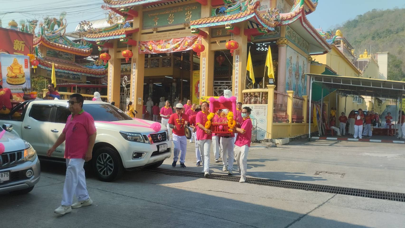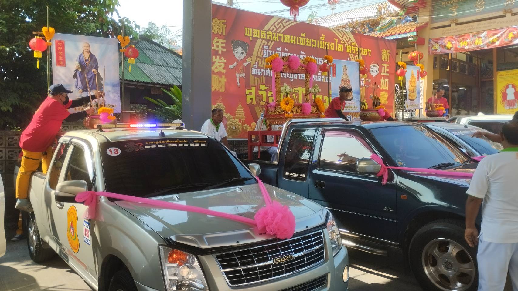 เมื่อเวลา 09.00น.( 14ก.พ.2567) ที่พุทธสมาคมเพียวเยี้ยงไท้ศรีราชา ริมถนนสายเก้ากิโล อำเภอศรีราชา จังหวัดชลบุรี นายเจริญ จุรีกานนท์ นายกพุทธสมาคมเพียวเยี้ยงไท้ศรีราชาพร้อมด้วยคณะกรรมการพุทธสมาคมเพียวเยี้ยงไท้ศรีราชา ได้จัดขบวนรถแห่องค์เทพเจ้าประกอบด้วยกระถางธูปเจ้าพระยาสุรศักดิ์มนตรี เจ้าพ่อกวนอู พระอรหันต์จี้กง เจ้าแม่กวนอิม เทพเจ้าไฉซิ่งเอี้ย เทพเจ้าหวังต้าเซียนฯ ออกจากพุทธสมาคมเพียวเยี้ยงไท้ศรีราชาจากถนนสายเก้ากิโลหน้าพุทธสมาคมฯไปรอบๆตลาดศรีราชา