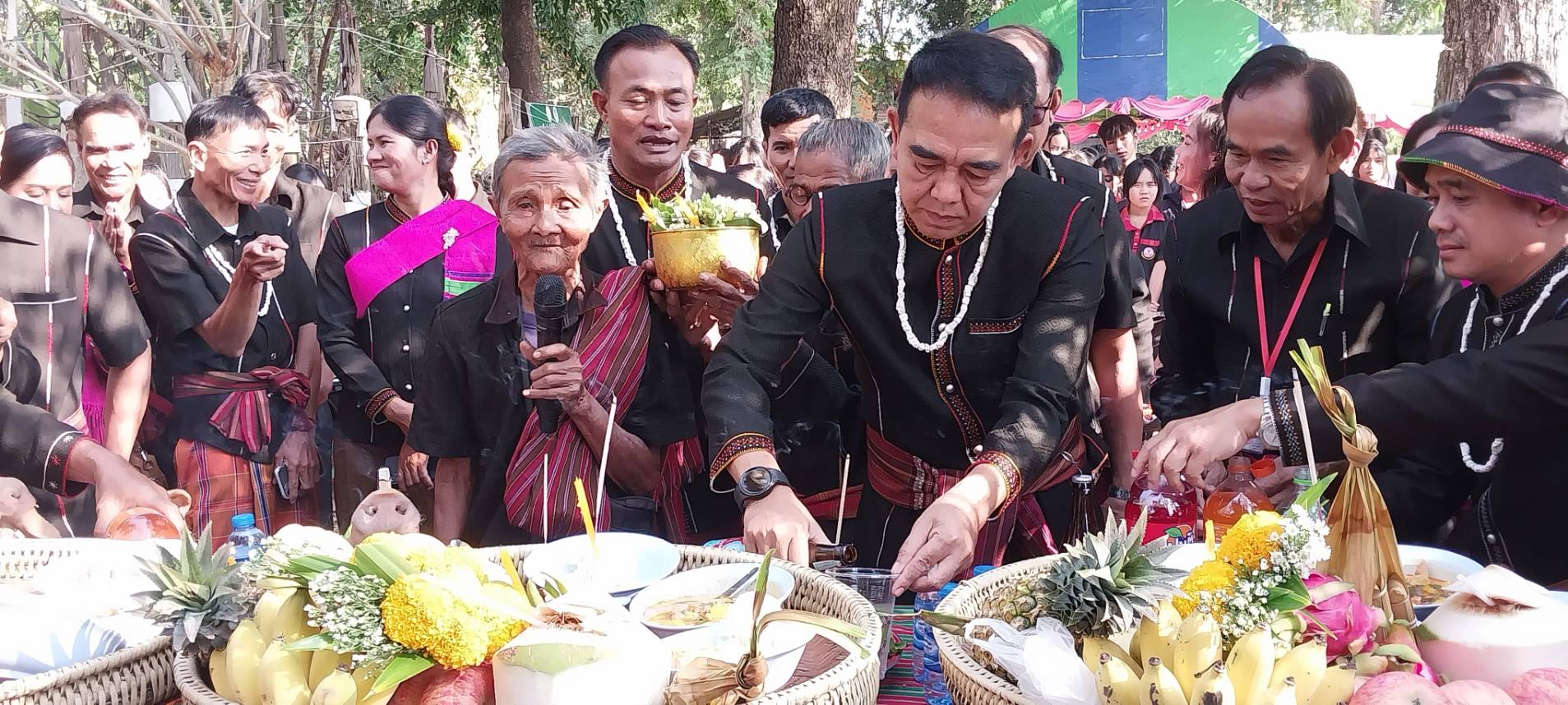 ผู้สื่อข่าวรายงานว่า เมื่อเวลา 09.00 น. วันที่ 14 ก.พ. 2567 ที่บริเวณลานวัฒนธรรมชาวกูย ตำบลสำโรงทาบ อำเภอสำโรงทาบ จังหวัดสุรินทร์ ได้มีการจัดโครงการ”ลานวัฒนธรรมชาวกูยตำบลสำโรงทาบ”ประจำปี 2567 โดยมีนายวิรุต ตรียวง นายอำเภอสำโรงทาบ ได้เดินทางไปเป็นประธานโดยในช่วงเช้าจะมีพิธีจุดธูปบอกกล่าวเจ้าที่เจ้าทาง ที่ขาดไม่ได้คือการจุดธูปบอกกล่าวศาลปู่หลวงอุดม ที่ตั้งศาลอยู่ภายในบริเวณลานงานและพิธีเซ่นไหว้ต้นไม้โบราณ ซึ่งมีอายุร่วม 200 กว่าปี ตลอดจนทำพิธีบังสกุลให้กับต้นไม้เก่าแก่อีกด้วย