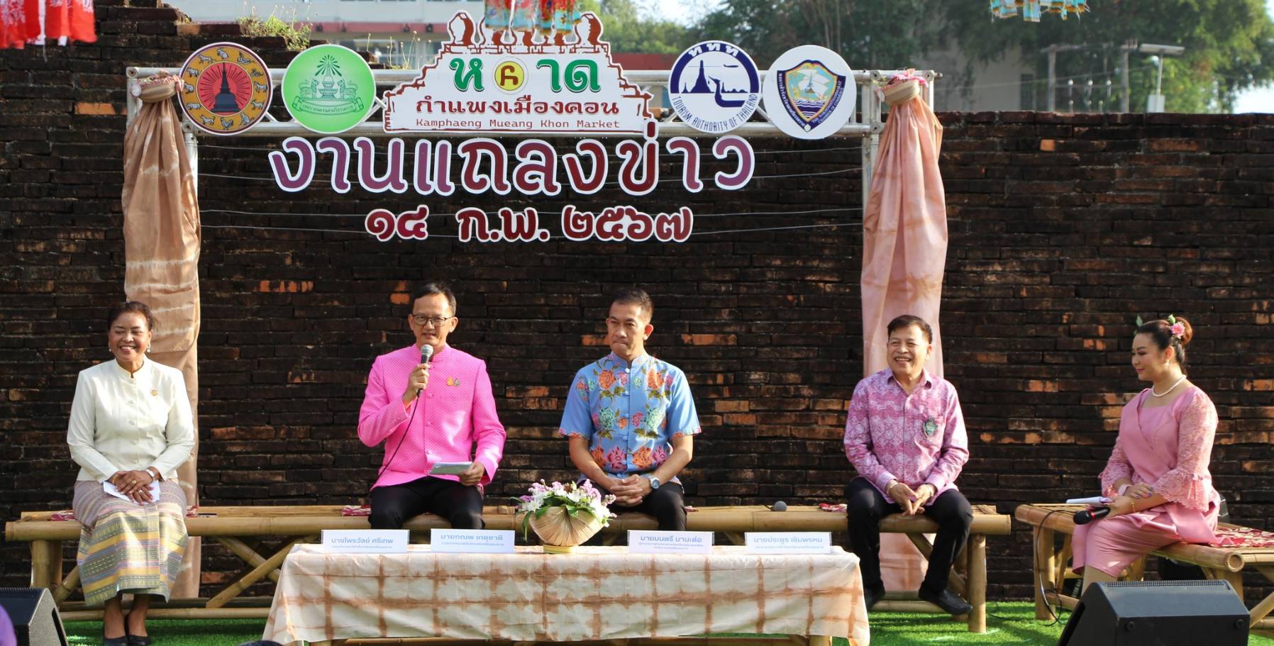 วันที่ 14 ก.พ. 2567 ที่บริเวณริมกำแพงเมืองเก่านครศรีธรรมราช (ฝั่งสวนสาธารณะศรีธรรมาโศกราช) ดร.กณพ เกตุชาติ นายกเทศมนตรีนครนครศรีธรรมราช พร้อมด้วย นายมนตรี มานะต่อ ผู้อำนวยการสำนักงานการท่องเที่ยวแห่งประเทศไทย (ททท.) สำนักงานจังหวัดนครศรีธรรมราช นายประยูร เงินพรหม ประธานหอการค้าจังหวัดนครศรีธรรมราช และนางไพรวัลย์ ศรีเทพ ท่องเที่ยวและกีฬาจังหวัดนครศรีธรรมราช ร่วมแถลงข่าวถึงความพร้อมในการเปิดตลาดนัดท้องถิ่นสีเขียว “หลาดกำแพงเมืองคอน” โดยมีหัวหน้าส่วนราชการ ผู้แทนหน่วยงาน องค์กรและภาคีเครือข่ายในพื้นที่ ตลอดจนประชาชนที่สนใจเข้าร่วมรับฟังการแถลงข่าวพร้อมเพรียงกัน