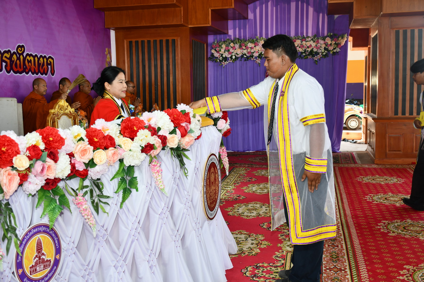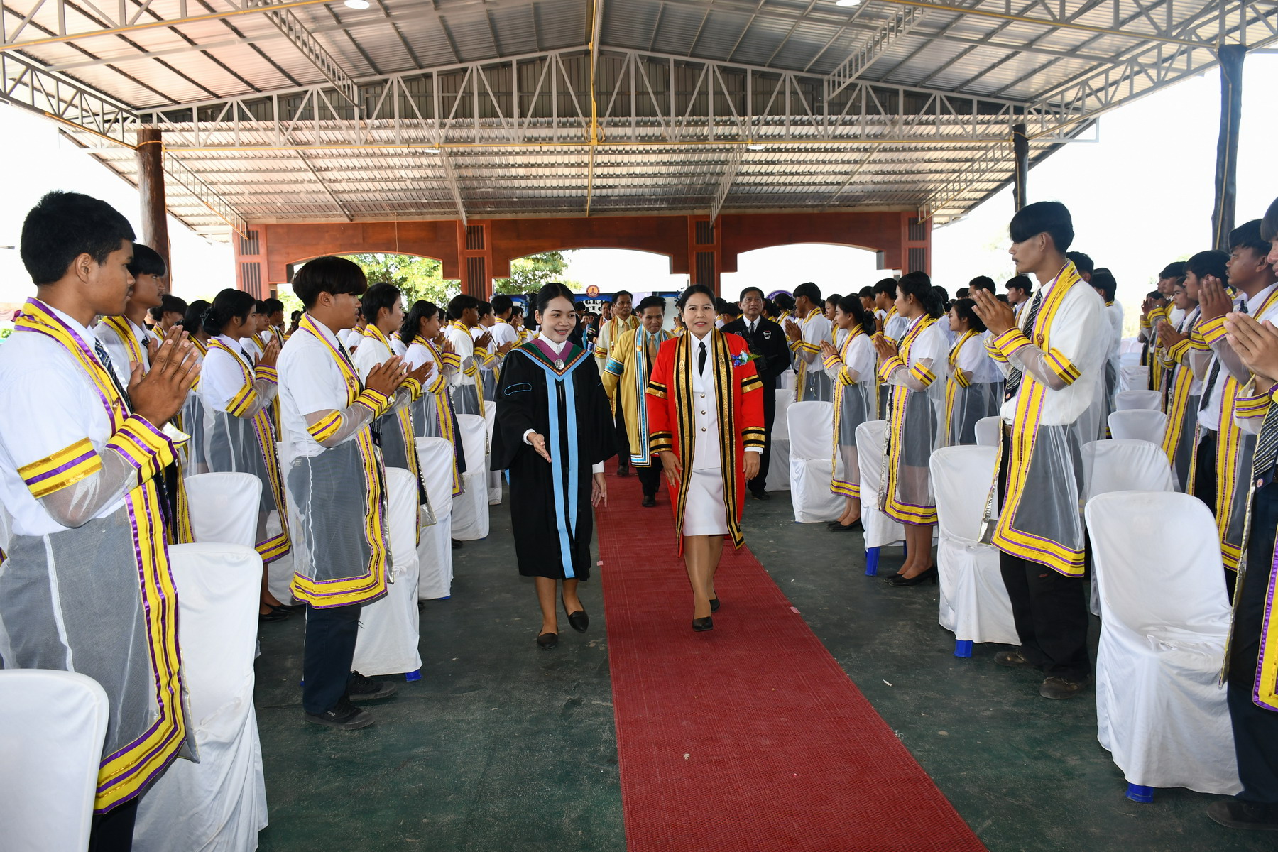 เมื่อวันที่ 16 ก.พ. 2567 ผู้สื่อข่าวรายงานว่า ที่หอประชุมหลวงพ่อพุฒ วายาโม วิทยาลัยเทคโนโลยีหลวงปู่สรวงวัดไพรพัฒนา ต.ไพรพัฒนา อ.ภูสิงห์ จ.ศรีสะเกษ นางสมฤดี ฉิมมุสิก ผอ.สำนักบริหารการอาชีวศึกษาเอกชน ได้เดินทางไปเป็นประธานในพิธีมอบประกาศนียบัตรผู้สำเร็จการศึกษา ประจำปีการศึกษา 2566 ซึ่งพระครูโกศลสิกขกิจ ผู้รับใบอนุญาตวิทยาลัยเทคโนโลยีหลวงปู่สรวงวัดไพรพัฒนา ได้นำคณะครู ร่วมกันจัดพิธีนี้ขึ้น ซึ่งในปีการศึกษา 2566 มี น.ร. น.ศ.ในระดับประกาศนียบัตรวิชาชีพ และ ระดับประกาศนียบัตรวิชาชีพชั้นสูง จบการศึกษาระดับประกาศนียบัตรวิชาชีพ ชั้นปีที่ 3 จำนวน 172 คน ระดับประกาศนียบัตรวิชาชีพชั้นสูงชั้นปีที่ 2 จำนวน 25 คน รวมจำนวนทั้งสิ้น 197 คน โดยมีการประกอบพิธีทางศาสนาเพื่อความเป็นสิริมงคล ซึ่ง ดร.ณัฐวิชญ์ ศิริรัชฎานันท์ ประธานคณะกรรมการอาชีวศึกษา จ.ศรีสะเกษ ได้มอบเกียรติบัตรแก่นักเรียน นักศึกษาที่มีผลการเรียนดีและมีความประพฤติเรียบร้อย จากนั้น ประธานในพิธีได้มอบใบประกาศนียบัตรให้แก่ผู้สำเร็จการศึกษาทุกคน โดยมี นายปรเมษฐ์ ศรีบูรณ์ ผอ.วิทยาลัยเทคโนโลยีหลวงปู่สรวงวัดไพรพัฒนา เป็นผู้กล่าวรายงาน และมี รศ.ดร.อุดมพันธ์ พิชญ์ประเสริฐ อาจารย์คณะครุศาสตร์ มหาวิทยาลัยราชภัฏศรีสะเกษ นายสมยศ พันธ์มา รอง ผอ.วิทยาลัยเทคโนโลยีหลวงปู่สรวงวัดไพรพัฒนา นายบุญมา นวลสาย ผอ.วิทยาลัยอาชีวศึกษาจุลมณีอุทุมพรพิสัย นายสำเร็จ ไพรบึง นายก อบต.ไพรพัฒนา นายบุญมี เสนคราม กำนัน ต.ไพรพัฒนา และผู้ปกครอง นักเรียน นักศึกษา ที่สำเร็จการศึกษา มาเข้าร่วมพิธีในครั้งนี้จำนวนมาก