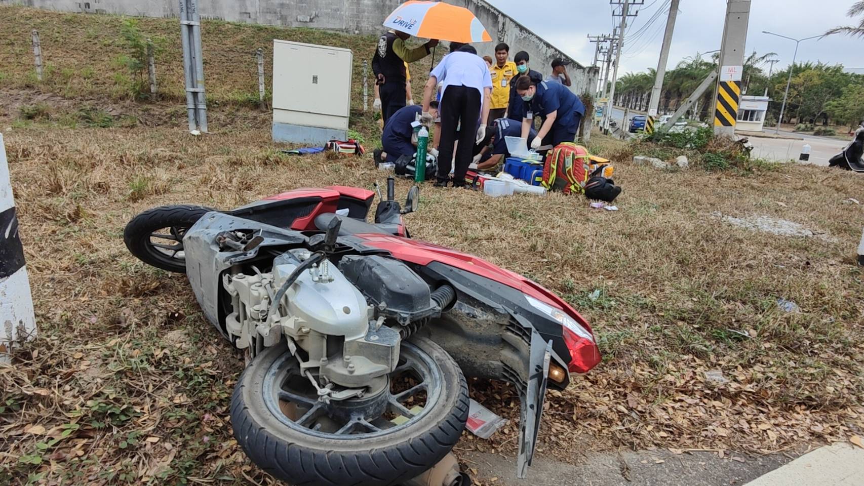 เมื่อเวลาประมาณ 14.30 น.วันที่ ( 17 กุมภาพันธ์ 2567)ศูนย์วิทยุกู้ภัยเพียวเยื่ยงไท้ศรีราชา จังหวัดชลบุรี ได้รับแจ้งเหตุรถยนต์นั่งส่วนบุคคลชนกับรถจักรยานยนต์ มีผู้ได้รับบาดเจ็บ 3 ราย 1 ในนั้นเป็นเด็กอายุประมาณ 1 เดือนกว่า มีอาการสาหัส หมดสติ ปลุกไม่ตื่น ไม่มีชีพจร จึงประสานเจ้าหน้าที่พยาบาลกู้ชีพ “ลั่นทม” โรงพยาบาลสมเด็จพระบรมราชเทวี ณ ศรีราชา เข้าร่วมช่วยเหลือ ที่บริเวณถนนสายยางเอนสายเก่า แยกนิคมอุตสาหกรรมปิ่นทอง 3 หมู่ 6 ตำบลบ่อวิน อำเภอศรีราชา จังหวัดชลบุรี หลังทราบเหตุจึงประสานเจ้าหน้าที่ตำรวจสภ.บ่อวินท้องที่เกิดเหตุให้ทราบ