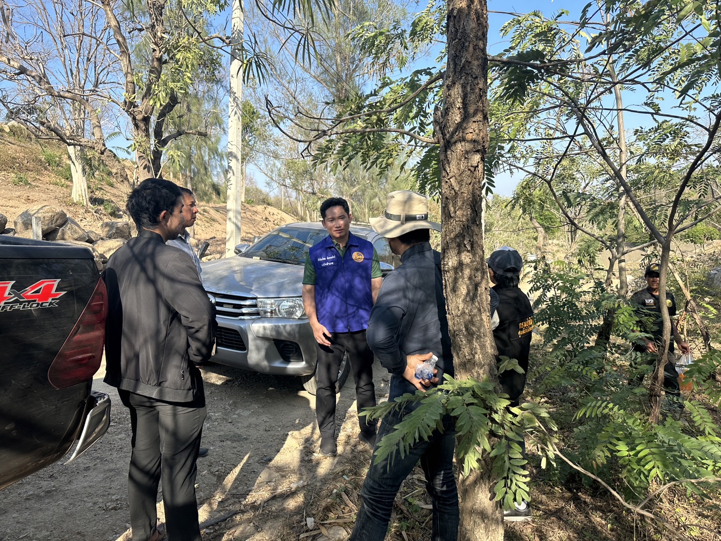 เมื่อเวลา 16.30 น. วันที่ 21 กุมภาพันธ์ 2567 ภายใต้การอำนวยการของนายธวัชชัย ศรีทอง ผู้ว่าราชการจังหวัดชลบุรี โดยนายนพรัตน์ ศรีพรหม นายอำเภอศรีราชา ได้มอบหมายให้นายพิพัฒน์พล อัมพรเพ็ชร์ ปลัดอำเภอฝ่ายความมั่นคงอำเภอศรีราชา ร่วมกับชุดปฏิบัติการพิเศษป่าไม้ สำนักจัดการทรัพยากรป่าไม้ที่ 9(ชลบุรี) ชุดปฏิบัติการพิเศษป่าไม้ชลบุรี1 หน่วยป้องกันรักษาป่าที่ ชบ.1 (บางละมุง) และนายปพนพัชญ์ ณัฐณัฐดุลย์พานิช ผู้ใหญ่บ้าน หมู่ที่ 4 ตำบลหนองขาม อำเภอศรีราชา จังหวัดชลบุรี ลงพื้นที่จับกุมบุคคลที่ใช้เครื่องจักรเข้าไปปรับเกลี่ยพื้นที่บนเขาตะแบก หมู่ที่ 4 ตำบลหนองขาม อำเภอศรีราชา จังหวัดชลบุรี หลังได้รับการร้องเรียนจากประชาชนในพื้นที่ โดยมีรายละเอียด ดังนี้ คณะเจ้าหน้าที่ฝ่ายปกครองอำเภอศรีราชาและเจ้าหน้าที่ชุดปฏิบัติการพิเศษป่าไม้และหน่วยป้องกันรักษาป่า ตรวจสอบพื้นที่บนเขาตะแบก หมู่ที่ 4 ตำบลหนองขาม อำเภอศรีราชา จังหวัดชลบุรี บริเวณพิกัด 725212 E 1451013 N (WGS 84) มีสภาพพื้นที่ค่อนข้างสูงชัน พบร่องรอยการเกลี่ยปรับพื้นที่บริเวณกว้าง ขณะเข้าพื้นที่มีรถแบคโฮ สีเหลือง จำนวน 1 คัน รีบขับออกนอกพื้นที่ จึงเข้าติดตามและควบคุมตัวนายนวรินทร์ ศิริวารินทร์ (ทราบชื่อนามสกุลภายหลัง) ทำหน้าที่ขับรถแบคโฮ
