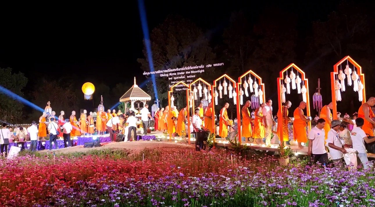 เมื่อช่วงกลางคืนของวันที่ 24 ก.พ. 2567 ผู้สื่อข่าวรายงานว่า ที่วัดป่าพิมลมังคลาราม ตำบลทุ่งไชย อำเภออุทุมพรพิสัย จังหวัดศรีสะเกษ นายอนุพงศ์ สุขสมนิตย์ ผู้ว่าราชการจังหวัดศรีสะเกษ ได้เดินทางไปเป็นประธานในพิธีอัญเชิญ “พระอุปคุต” ในงาน “เพ็ญมาฆมาสตักบาตรใต้แสงจันทร์” เทิดไท้องค์ราชัน 72 พรรษา Giving Alms Moonligh ประจำปี 2567 ชึ่งจัดขึ้นระหว่างวันที่ 21 – 24 กุมภาพันธ์ 2567 เพื่อเฉลิมพระเกียรติพระบาทสมเด็จพระเจ้าอยู่หัว เนื่องในโอกาสมหามงคลเฉลิมพระชนมพรรษา 72 พรรษา และส่งเสริมพระพุทธศาสนา เจริญจิตภาวนา เป็นพุทธบูชาถวายแด่องค์สมเด็จพระสัมมาสัมพุทธเจ้า ซึ่งวัดแห่งนี้จัดพิธีตักบาตรใต้แสงจันทร์นี้ขึ้นเป็นแห่งแรกของโลก