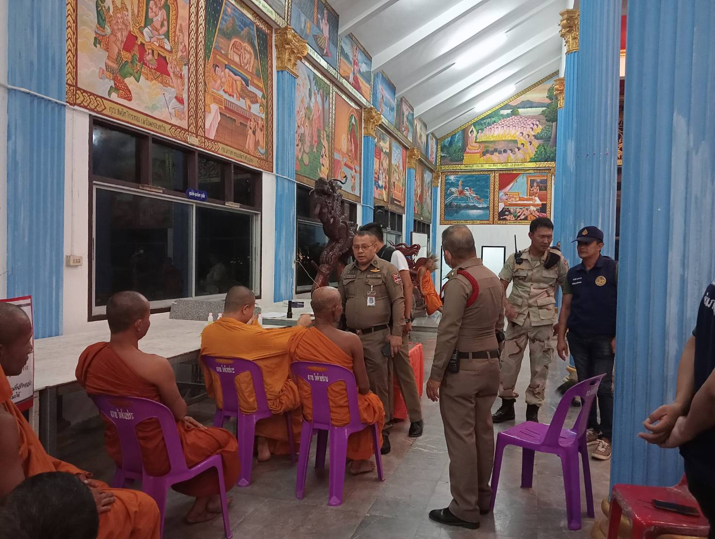 เมื่อเวลา20.30 น.ของวันที่ 29 ก.พ.พระครูญาณประยุต เจ้าคณะตำบลบ่อวินได้ประสานไปยังนายนพรัตน์ ศรีพรหม นายอำเภอศรีราชา และได้สั่งการไปยังนายพิพัฒน์พล อัมพรเพ็ชร์ ปลัดอำเภอศรีราชาและนางสาวชิดชนก ไพบูลย์เวชสวัสดิ์ ปลัดอำเภอศรีราชา พร้อมเจ้าหน้าที่ฝ่ายปกครอง พ.ต.อ.เอนก สระทองอยู่ ผกก.สภ.บ่อวิน ได้สั่งการไปยัง พ.ต.ท.สุพรรณ ใจหาญ สวป พร้อมเจ้าหน้าที่ตำรวจลงพื้นเข้าตรวจค้นวัดแห่งหนึ่งในพื้นที่ ม.3 ต.บ่อวิน อ.ศรีราชา จ.ชลบุรี