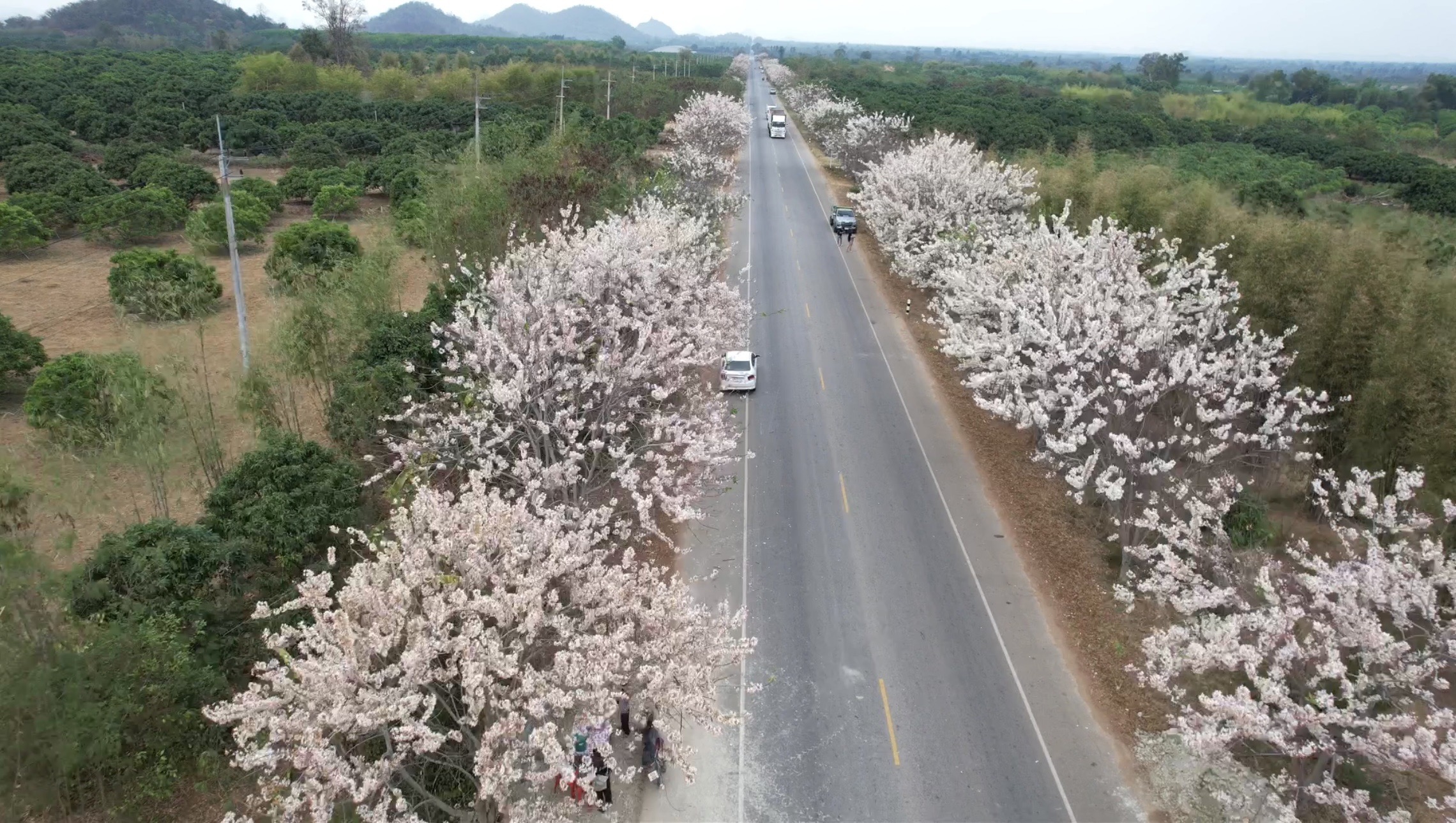 ที่บริเวณถนน ทางหลวงหมายเลข 3405 ช่วงบริเวณหลักกิโลเมตรที่ 1 + 000 บ้านแหลมใหม่ อำเภอโป่งน้ำร้อน จังหวัดจันทบุรี (หรือถนนบ้านแหลม-สวนส้ม ประชาชนจำนวนมาก มาจากหลากหลายพื้นที่ เดินทางมารวมตัวกันด้วยจุดประสงค์เดียวคือต้องการถ่ายรูปบรรยากาศที่เต็มไปด้วยดอกกัลปพฤกษ์สีชมพู หรือเรียกอีกอย่างว่าดอกซากุระเมืองไทย พี่กำลังบานสะพรั่งเต็มสองฝั่งถนน ระยะทางร่วม 500 เมตร สำหรับดอกกัลปพฤกษ์สีชมพูบริเวณนี้จะเริ่มบานสะพรั่งให้ยนโฉมตั้งแต่ช่วงประมาณเดือนกุมภาพันธ์ ไปจนถึงปลายเดือนมีนาคม บางปีอาจจะบานเร็วกว่า ช่วงเวลาที่เหมาะกับการถ่ายรูปส่วนใหญ่นักท่องเที่ยวจะมากันช่วงบ่ายถึงเย็น เนื่องจากจะได้แสงที่สวยงามพอดี หรือถ้าใครสะดวกผ่านมาเวลาใดก็สามารถจอดรถถ่ายรูปได้เช่นกันตามความสะดวก แต่ต้องระมัดระวังเรื่องความปลอดภัย เนื่องจากบริเวณนี้เป็นถนนที่รถวิ่งสวนกัน มีทั้งรถกระบะและรถบรรทุกหนักเนื่องจากเป็นเส้นทางที่ใช้ขนย้ายและขนส่งผลิตผลทางการเกษตรไปยังประเทศเพื่อนบ้าน
