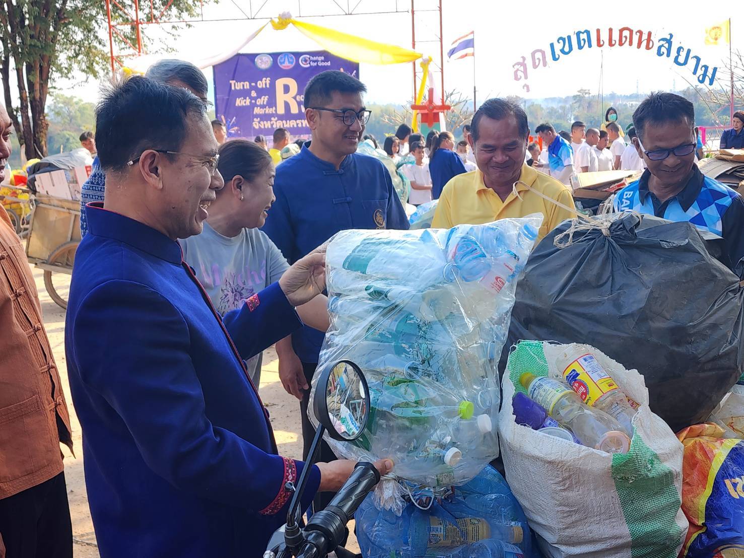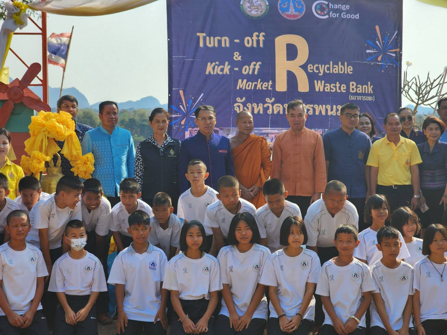 วันที่ 1 มีนาคม 2567 ที่วัดพระบาทเวินปลา (ธนาคารขยะองค์การบริหารส่วนตำบลเวินพระบาท) ตำบลเวินพระบาท อำเภอท่าอุเทนจังหวัดนครพนม นายวันชัย จันทร์พร ผู้ว่าราชการจังหวัดนครพนม นางสงวน จันทร์พร ประธานแม่บ้านมหาดไทยจังหวัดนครพนม ดำเนินการ Kick-Off ขับเคลื่อนธนาคารขยะ (Recyclable Waste Bank) ขององค์กรปกครองส่วนท้องถิ่น ซึ่งในวันนี้ องค์กรปกครองส่วนท้องถิ่นทั้ง 103 แห่งของจังหวัดนครพนม ได้เริ่ม Kick-Off การขับเคลื่อนธนาคารขยะ (Recyclable Waste Bank) ด้วยความมุ่งมั่นในการขับเคลื่อนพัฒนาสิ่งแวดล้อมอย่างต่อเนื่องตามนโยบายของกระทรวงมหาดไทย ในการส่งเสริมให้องค์กรปกครองส่วนท้องถิ่นได้มีการจัดการขยะมูลฝอยโดยดำเนินการตามหลักการพัฒนาอย่างยั่งยืน ด้วยการจัดให้มีระบบจัดการและกำจัดขยะมูลฝอยที่มีประสิทธิภาพ สามารถนำไปใช้ให้เกิดประโยชน์ด้านอื่น ๆ โดยมีแนวทางการขับเคลื่อนธนาคารขยะ ในการสนับสนุนให้ประชาชนได้มีการคัดแยกขยะรีไซเคิลในครัวเรือน และสนับสนุนให้องค์กรปกครองส่วนท้องถิ่นนำแนวคิดระบบเศรษฐกิจหมุนเวียน (Circular Economy) มาใช้ในการจัดการสิ่งปฏิกูลและมูลฝอยภายใต้หลักการ 3ช (3Rs) คือ ใช้น้อย (Reduce) ใช้ซ้ำ (Reuse) และนำกลับมาใช้ใหม่ (Recycle) พร้อมทั้งรณรงค์สร้างความรับรู้ความเข้าใจ และปลูกจิตสำนึกให้ประชาชนในทุกพื้นที่มีส่วนร่วมในการลดปริมาณขยะและคัดแยกขยะที่สามารถนำไปรีไซเคิลหรือไปขาย เพื่อให้มีรายได้สู่ชุมชน และพัฒนาสู่การจัดตั้งธนาคารขยะเพื่อเป็นสถานที่รวบรวมและรับซื้อขยะรีไซเคิลจากประชาชน อันเป็นการสร้างมูลค่าเพิ่มให้กับชุมชนและนำรายได้ไปจัดสวัสดิการสังคมในรูปแบบต่าง ๆ