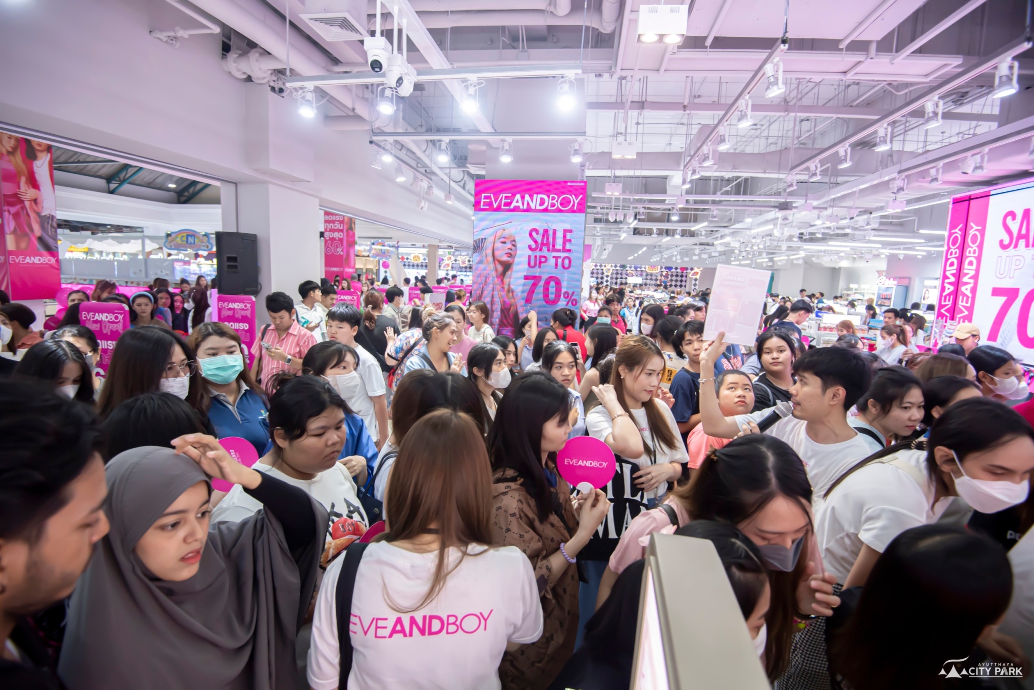 EVEANDBOY ร้านรวมเครื่องสำอางแบรนด์ดัง ได้กฤกษ์เปิดสาขาที่ 26 สาขาใหม่ที่ใหญ่ที่สุดในภาคกลางที่ศูนย์การค้าอยุธยาซิตี้พาร์คอย่างเป็นทางการ เอาใจนักช้อปสายบิวตี้ชาวอยุธยาและจังหวัดใกล้เคียงที่มารอการเปิดร้านกันอย่างคึกคักห้างแตกกันเลยทีเดียว โดยมีขบวนช้างจากวังช้างอยุธยาแลเพนียด มาสร้างสีสันรอต้อนรับพร้อมแจกบัตรรับสิทธิพิเศษให้กับลูกค้ากว่า 200 คน