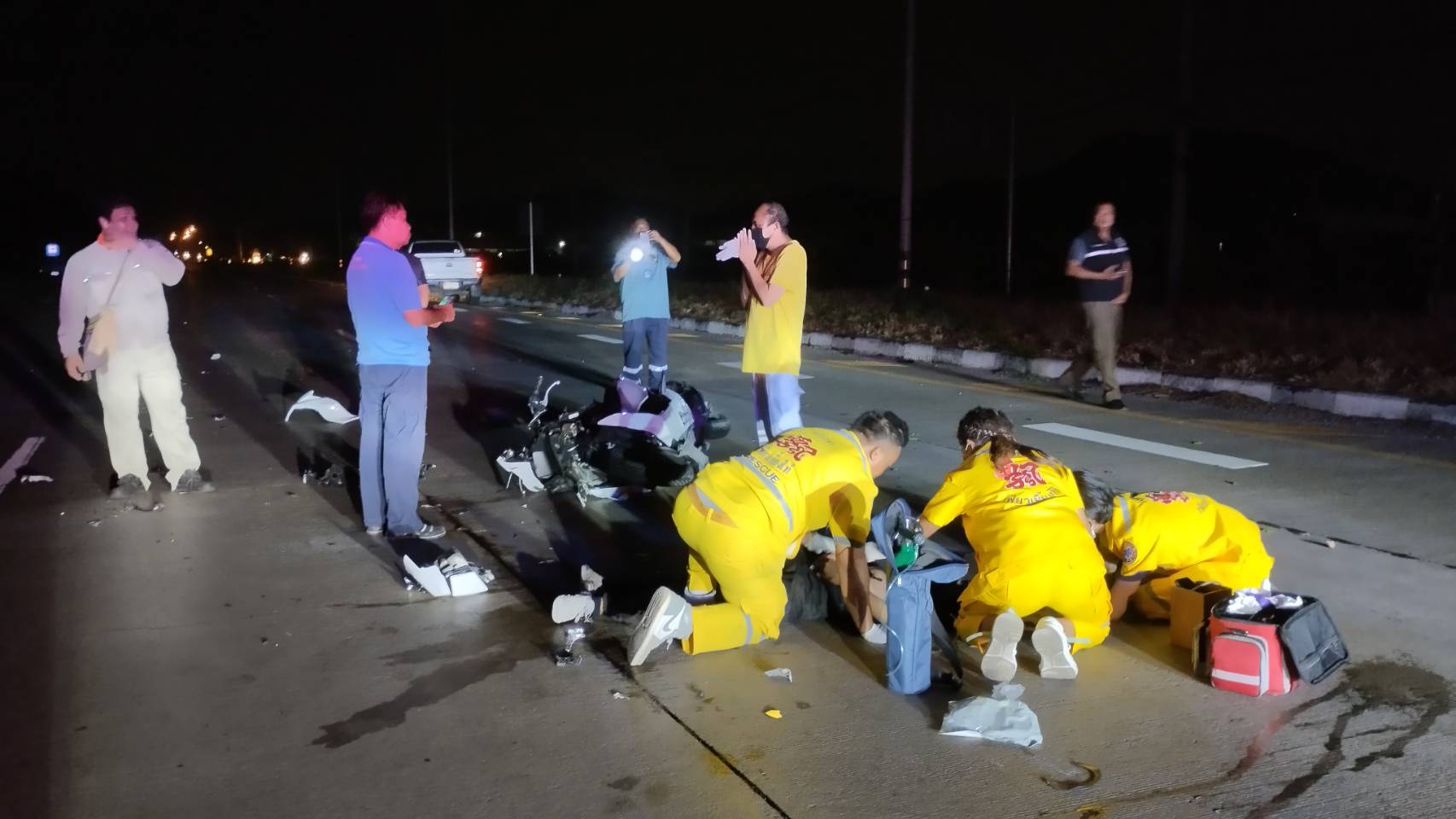 เมื่อเวลา 04.00 น. ( 4 มีนาคม 2567 ) เจ้าหน้าที่ศูนย์วิทยุสภ.หนองขามได้รับแจ้งมีเหตุรถจยย.พุ่งชนยางรถด้านหลังรถพ่วง18ล้อมีผู้บาดเจ็บสาหัสที่ถนนสายแหลมฉบัง-มาบเอียง ตรงข้ามกับนิคมอุตสาหกรรมปิ่นทอง2 หมู่9 ตำบลหนองขาม อำเภอศรีราชา หลังรับแจ้งจึงประสานกู้ภัยเพียวเยี้ยงไท้ศรีราชารุดไปตรวจสอบที่เกิดเหตุพบร่างของนายวรัญญู ทองทึง อายุ22ปี บ้านเดิมอยู่จังหวัดศรีสะเกษ ที่นอนสลบไม่ได้สติอยู่ที่ใกล้กับเกาะกลางถนนและไม่ห่างกันพบรถจยย.ยี่ห้อฮอนด้าPCXสีขาว หมายเลขทะเบียน 1กผ-5564 ศรีสะเกษ สภาพด้านหน้ารถพังยับเยิน