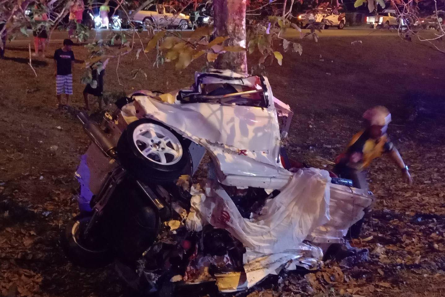 วันที่ 4 มี.ค. 2567 ผู้สื่อข่าวรายงานว่าเมื่อวานนี้ เวลา 19.50 น.วันที่( 3 มี.ค. )พ.ต.อ.กิตติชัย ไกรนรา ผกก.สภ.เมือง จ.นครศรีธรรมราช ได้รับแจ้งเหตุรถยนต์เก๋งเสียหลักชนต้นไม้บริเวณใกล้เคียงสำนักงาน กสทช.บ้านมะม่วงปลายแขน ถนนเบญจมราชูทิศ-น้ำแคบ หมู่ 8 ต.ท่างิ้ว อ.เมือง จ.นครศรีธรรมราช มีผู้เสียชีวิตสุดสยองขวัญ 2 ศพ จึงพร้อมด้วยพนักงานสอบสวน แพทย์เวร รพ.มหาราช และเจ้าหน้าที่หน่วยกู้ภัยมูลนิธิใต้เต็กตึ้ง รีบรุดไปตรวจสอบยังที่เกิดเหตุ