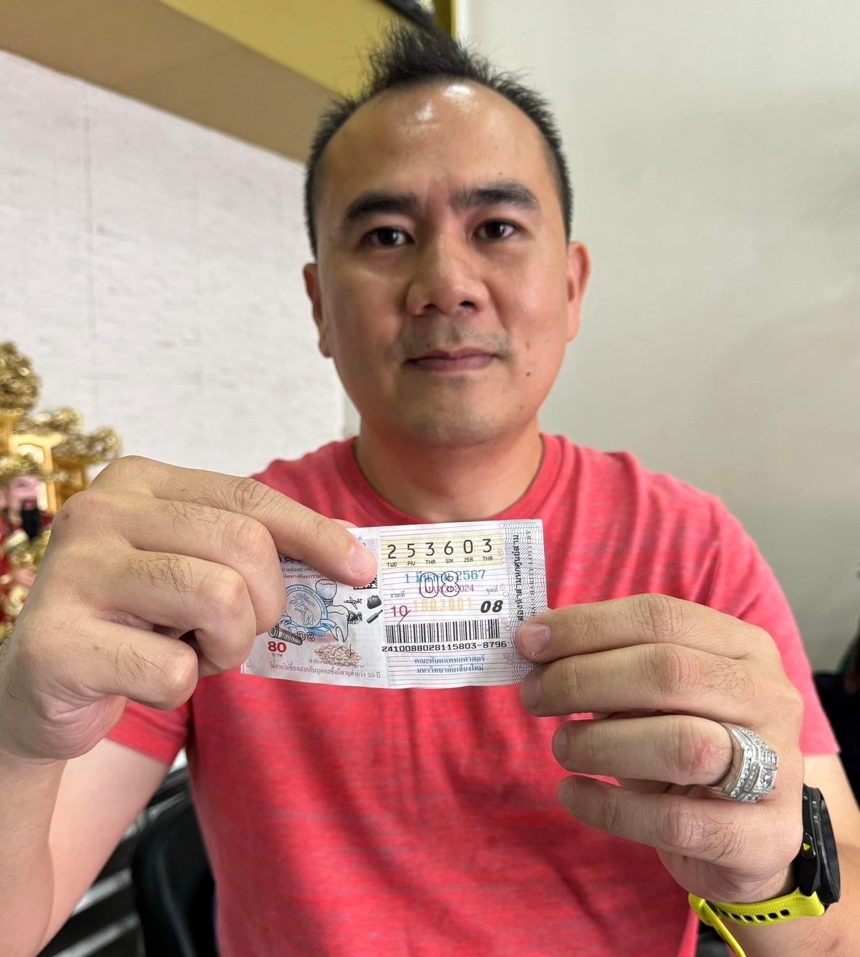 โดยแรงบันดาลใจให้ซื้อเลขนี้คือในวันที่ปลุกเสกพระปิดตาหลวงพ่อสง่า วัดเขาไม้แดง ที่วัดเครือวัลย์ ชลบุรี เมื่อปลายเดือนกุมภาพันธ์ ได้ก้มลงกราบขอพรหลวงพ่อสง่า ที่ข้างพระอุโบสถ แล้วเดินออกมาหาซื้อสลากกินแบ่งรัฐบาลที่หน้าวัดเครือวัลย์ 1 ใบ ที่เพิ่งรู้ว่าถูกรางวัลที่1 ในวันนี้เพราะเพิ่งนำสลากกินแบ่งรัฐบาลออกมาตรวจจึงรู้ว่าถูกรางวัลที่1 รับ 6ล้านบาท แม้ว่าพระเครื่องหลวงพ่อสง่า วัดเขาไม้แดง รุ่นสมปรารถนาที่ตนเองสร้างถวายหลวงพ่อสง่ายังไม่ได้ทำพิธีปลุกเสกอย่างเป็นทางการก็ตาม