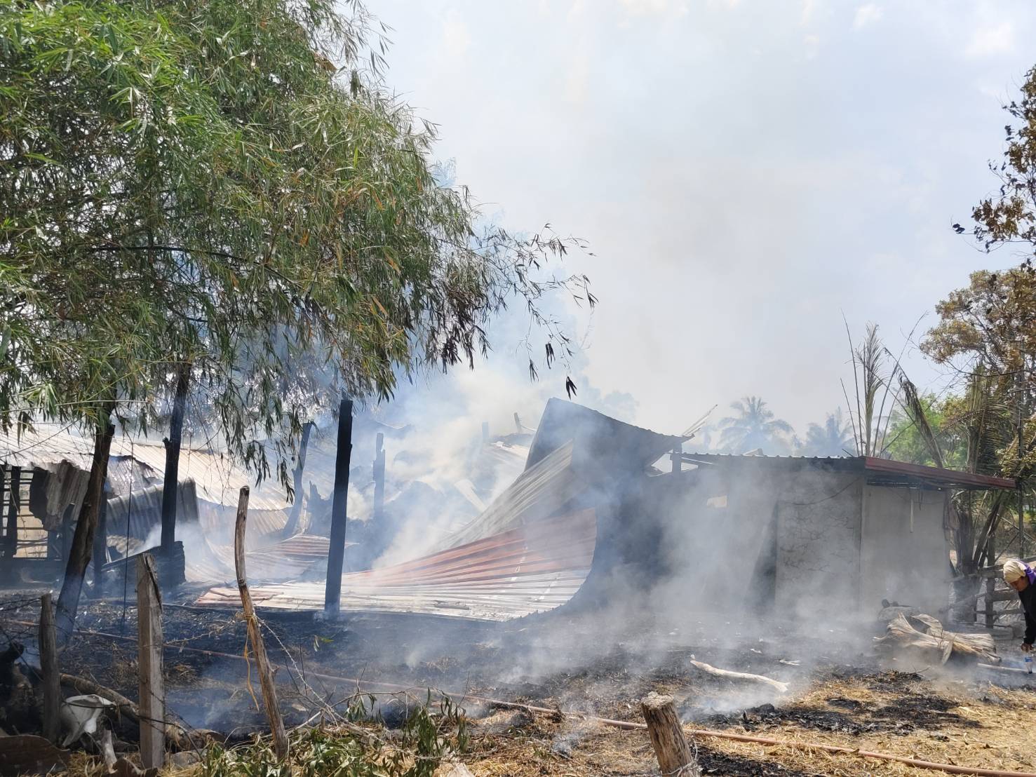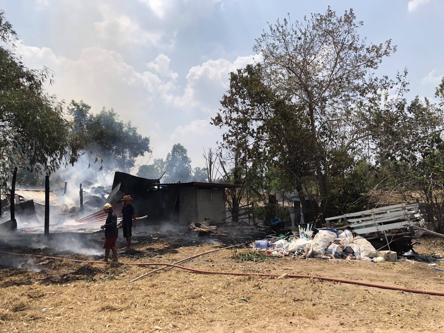 และร้อยเวร 20 สายตรวจ ได้รับแจ้งว่า มีเหตุเพลิงไหม้โรงเรือนเก็บฟาง โรงคอกวัว ที่บ้านเลขที่ 68 ม.13 บ้านดินแดง ใกล้กับโรงเรียนบ้านดินแดง ต.หนองบัวบาน อ.รัตนบุรี จ.สุรินทร์