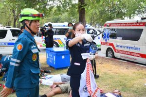 วันที่ 15 มีนาคม 2567 ที่ โรงพยาบาลพุทธโสธร อ.เมืองฉะเชิงเทรา ได้จัดโครงการเตรียมความพร้อมแผนรับอุบัติเหตุหมู่มาก หรืออุบัติเหตุหมู่ เพื่อเป็นการเตรียมความพร้อมของเจ้าหน้าที่ รพ.พุทธโสธรทุกฝ่าย และเครือข่ายเจ้าหน้าที่กู้ภัยฉะเชิงเทรา กรณีเกิดอุบัติเหตุขึ้นจริง เพื่อให้เจ้าหน้าที่ทุกฝ่ายทราบถึงบทบาท และการปฏิบัติตามแผนได้อย่างมีประสิทธิภาพ