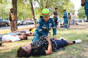 ซึ่งได้จำลองให้ศาลาจัตุรมุข เป็นที่เกิดเหตุบริเวณแยกห้างสรรพสินค้าคอมเพล็กซ์ มีผู้บาดเจ็บเบื้องต้น ประมาณ 70 ราย โดยมีแพทย์หญิงนาตยา มิลส์ ผู้อำนวยการโรงพยาบาลพุทธโสธร รองผู้อำนวยการ แพทย์ พยาบาล บุคลากรโรงพยาบาลพุทโสธร เจ้าหน้าที่กู้ภัยฉะเชิงเทรา เข้าร่วมซ้อมโครงการดังกล่าว