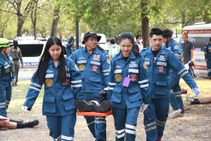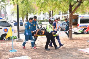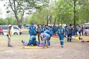 โดยได้มีการจำลองสถานการณ์เป็นเหตุการณ์รถ 10 ล้อ ชนกับรถบัสรับทหารเกณฑ์