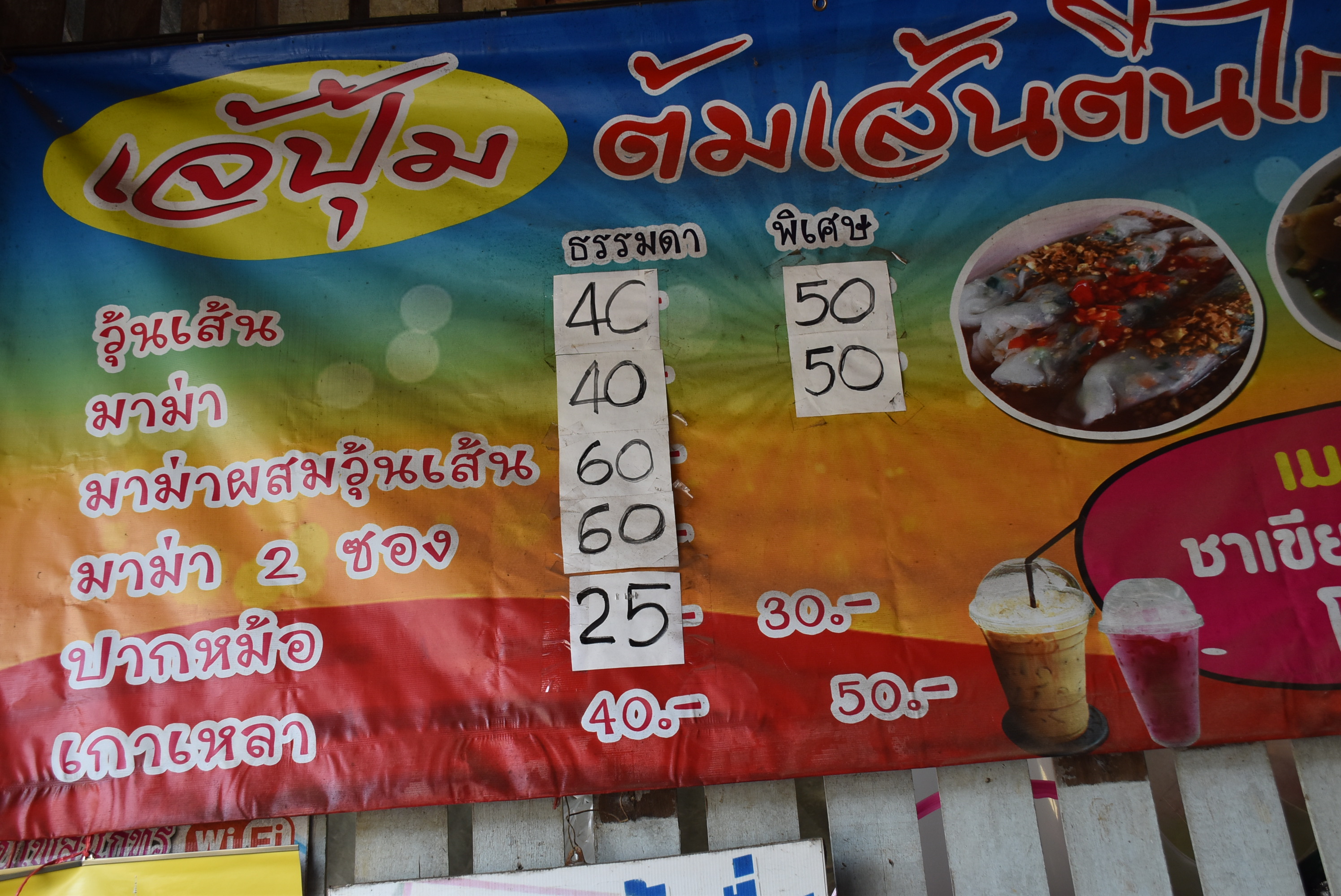 สรรพคุณและอัตลักษณ์ของต้มเส้นตีนไก่ คือ.ซุปกลมกล่อม รสชาติอร่อยเข้มข้น กลิ่นหอม เนื้อไก่เปื่อยนุ่ม เส้นนิ่ม ด้านราคาต้มเส้นตีนไก่อยู่ที่ 40-50 บาท/ชาม/ถุง ส่วนขนมปากหม้อ ราคา 25 บาท –จาน/ถุง เปิดบริการ เวลา 07.30- 13.00 น.ก็หมดแล้วหมดทุกวัน เพราะเราใช้เฉพาะของสดๆ รวมทั้งผักด้วย อาหารและวัตถุดิบจะไม่มีตกค้าง โทร. 093 369 9968.