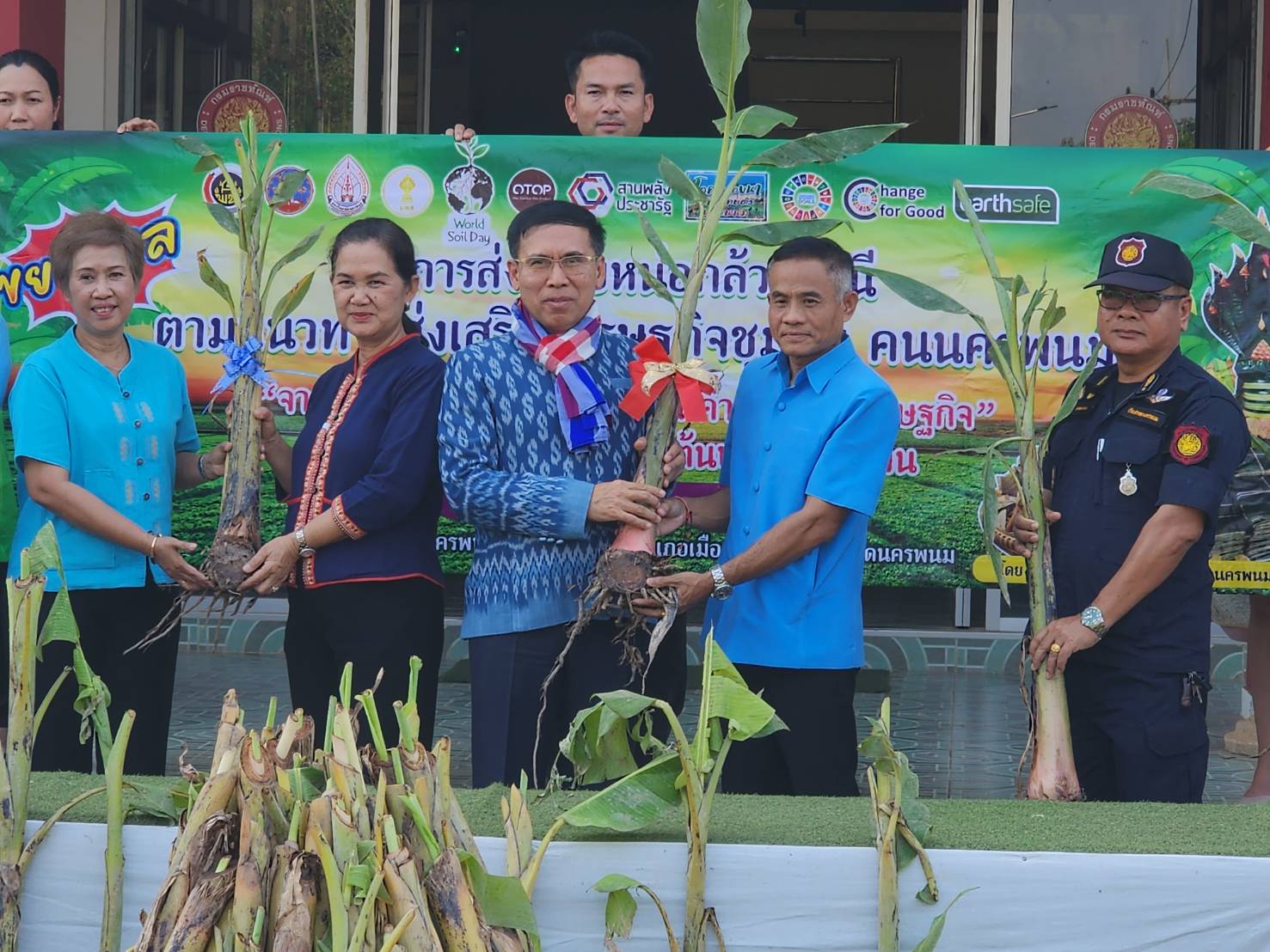 ที่บริเวณด้านหน้าเรือนจำกลางจังหวัดนครพนม และแปลงปลูกต้นกล้วยตานี คณะเกษตรศาสตร์และเทคโนโลยี มหาวิทยาลัยนครพนม ตำบลขามเฒ่า อำเภอเมืองนครพนม จังหวัดนครพนม นายวันชัย จันทร์พร ผู้ว่าราชการจังหวัดนครพนม ส่งมอบหน่อกล้วยตานี ตามแนวทางส่งเสริมเศรษฐกิจชุมชน คนนครพนม “จากใบตองกล้วยธรรมดา สู่ มูลค่าเพิ่มทางเศรษฐกิจ” ต้นเงิน (ATM) ข้างบ้านต้นบำนาญในสวน โดยดำเนินการส่งมอบหน่อกล้วยตานี ให้กับเรือนจำกลางนครพนมและคณะเกษตรและเทคโนโลยีมหาวิทยาลัยนครพนม เพื่อเป็นแปลงสาธิตและเป็นแปลงขยายหน่อกล้วยตานี สำหรับใช้ในการขยายพันธุ์ และผลิตหน่อกล้วยตานี ให้กับประชาชนที่มีความต้องการในพื้นที่จังหวัดนครพนม ภายใต้แนวทางการส่งเสริมรายได้ให้กับประชาชนในพื้นที่จังหวัดนครพนม ซึ่งจังหวัดนครพนม มีการผลิตและแปรรูปผลิตภัณฑ์ ที่ใช้บรรจุภัณฑ์จากใบกล้วยตานี เช่น หมูยอ ธุรกิจแหนม การห่อข้าวต้มมัด การทำพานบายศรี ขันหมากเบ็ง เศียรพญานาค บูชาองค์พระธาตุพนม และพระธาตุสำคัญประจำวันเกิด ทั้ง 7 พระธาตุในจังหวัดนครพนม รวมถึงการทำพานบายศรีบูชาพญาศรีสัตตนาคราช ให้นักท่องเที่ยวที่มาเยือนจังหวัดนครพนม ที่มีแนวโน้มเพิ่มขึ้นทุกปี