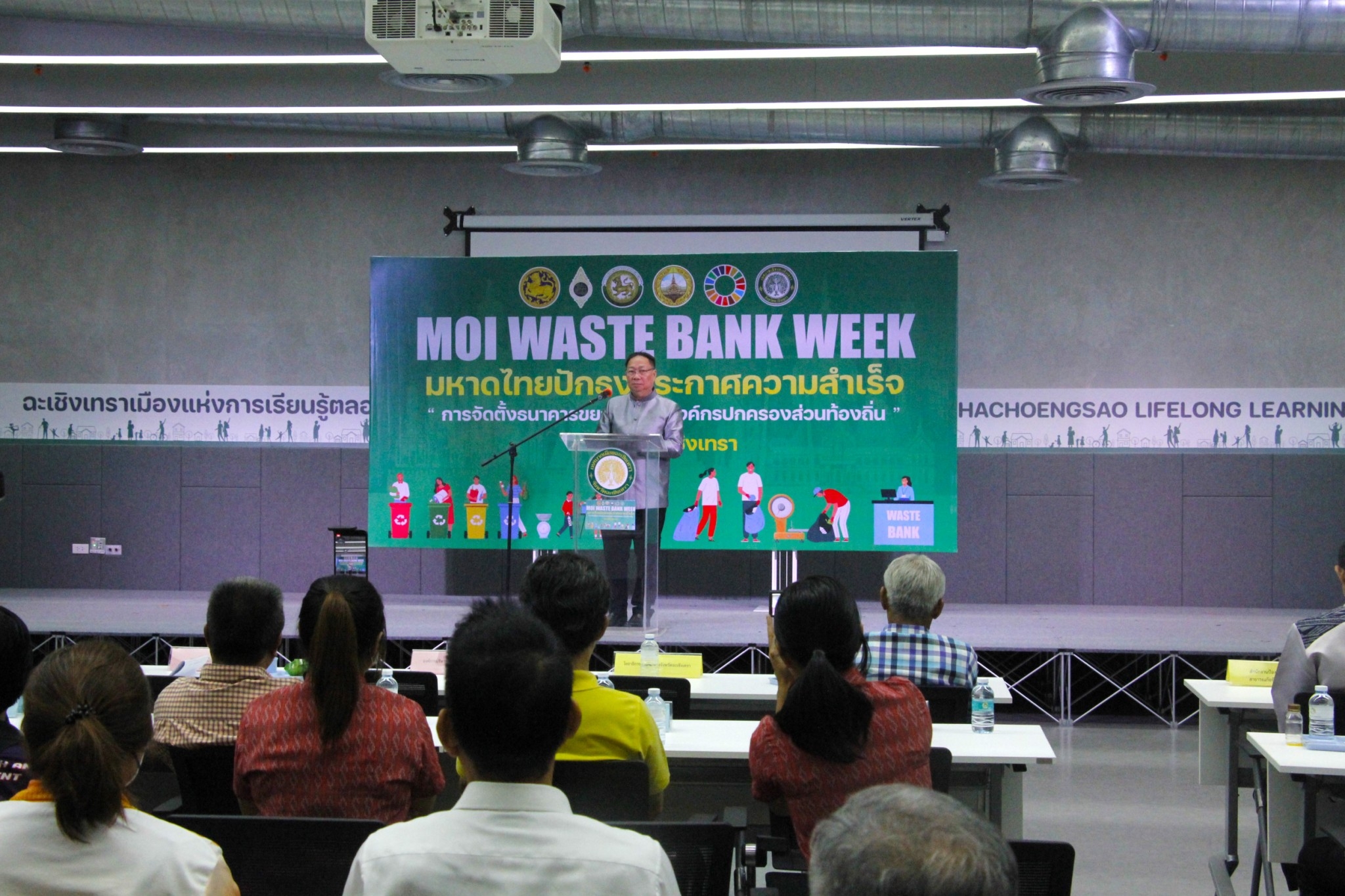 วันที่ 21 มีนาคม 2567 เวลา 14.00 น. นายกำพล สิริรัตตนนท์ รองผู้ว่าราชการจังหวัดฉะเชิงเทรา เป้นประธานในพิธีเปิดงาน งาน “MOI Waste Bank Week – มหาดไทยปัดธงประกาศความสำเร็จ 1 องค์กรปกครองส่วนท้องถิ่น 1 ธนาคารขยะ” จังหวัดฉะเชิงเทรา ณ ศูนย์การเรียนรู้เมืองฉะเชิงเทรา KCC เทศบาลเมืองฉะเชิงเทรา พร้อมด้วยนางรัดใจ สิริรัตตนนท์ รองประธานแม่บ้านมหาดไทยจังหวัดฉะเชิงเทรา หัวหน้าส่วนราชการ ผู้บริหารองค์กรปกครองส่วนท้องถิ่น อาสาสมัครท้องถิ่นรักษ์โลกเข้าร่วมในพิธี