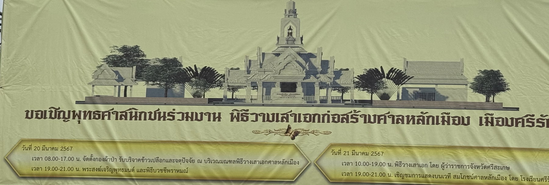 เมื่อวันที่ 21 มี.ค. 2567 ผู้สื่อข่าวรายงานว่า ที่บริเวณตลาดสดเทศบาลตำบลศรีรัตนะ อ.ศรีรัตนะ จ.ศรีสะเกษ นายชัยยงค์ เมธาสุรวิทย์ รอง ผวจ.ศรีสะเกษ ได้เดินทางไปเป็นประธานในพิธียกเสาเอกศาลหลักเมืองศรีรัตนะ ซึ่งนายสุรพล ศรีพนมธนากร นายอำเภอศรีรัตนะ ได้นำ ประชาชนชาว อ.ศรีรัตนะ ร่วมกันจัดสร้างขึ้นมา โดยได้รับความเมตตาจาก พระครูศรีรัตนาภิรักษ์ รองเจ้าคณะจังหวัดศรีสะเกษ และเจ้าอาวาสวัดเกียรติแก้วสามัคคี เป็นประธานฝ่ายสงฆ์ มีการประกอบพิธีทางศาสนา พิธีบวงสรวงสิ่งศักดิ์สิทธิ์ พิธียกเสาเอกขึ้นตั้ง การรำบวงสรวงโดยนางรำจาก 7 ตำบลของ อ.ศรีรัตนะที่แต่งกายด้วยชุดพื้นเมืองพากันมาร่วมรำอย่างสวยงามตระการตา มีประชาชนนำเอาข้าวเปลือกมาบริจาคจำนวนกว่า 10 ตัน โดยมี นายธีระ ไตรสรณกุล อดีต ส.ส.ศรีสะเกษ เขต 5 นางนริตา ไตรสรณกุล ส.อบจ.ศรีสะเกษ เขต อ.ศรีรัตนะ นายบุญเพ็ญ พรหมมานนท์ นายกเทศมนตรีตำบลศรีรัตนะ คณะข้าราชการ ผู้นำองค์กรปกครองส่วนท้องถิ่น ผู้นำชุมชน กำนัน ผู้ใหญ่บ้าน พ่อค้า ประชาชนมาร่วมพิธีจำนวนมาก