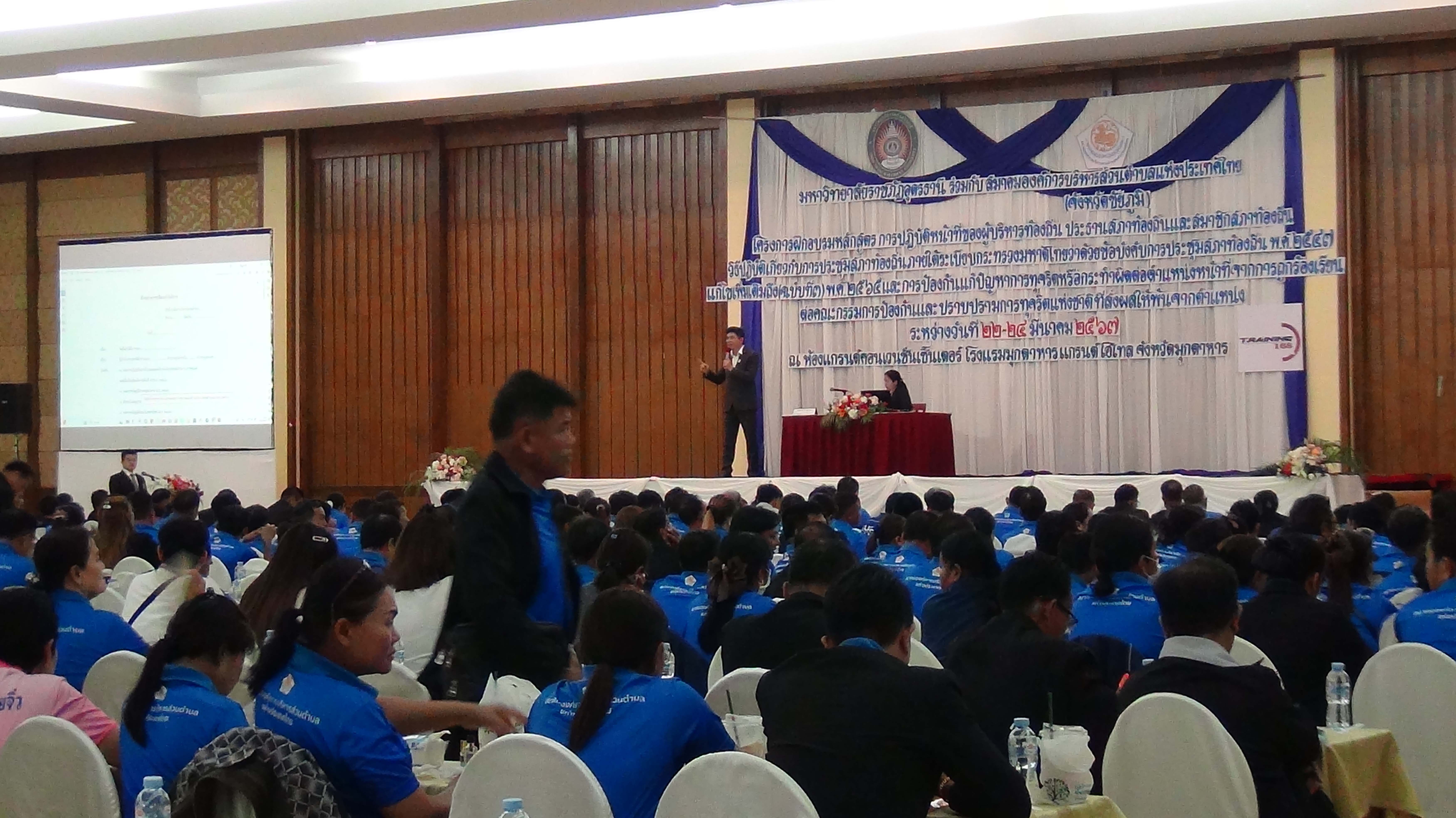 23 03 67 ที่โรงแรมมุกดาหาร แกรนด์ อำเภอเมือง จังหวัดมุกดาหาร รศ.(พิเศษ) ดร.วิระศักดิ์ ฮาดดา นายกสมาคม องค์การบริหารส่วนตำบลแห่งประเทศไทย เป็นประธานเปิดการฝึกอบรมการปฎิบัติหน้าที่ของผู้บริหารท้องถิ่น ประธานสภาท้องถิ่น และสมาชิกท้องถิ่น ภายใต้ระเบียบกระทรวงมหาดไทย พร้อมด้วย นายปราโมทย์ เพชรรัตน์ เลขาธิการนายกสมาคม อบต.แห่งประเทศไทย โดยมีนายสมาน สุธรรมาภิวัฒน์ อุปนายกสมาคม อบต.แห่งประเทศไทย กล่าวรายงาน พร้อมด้วย นายอัครนันท์ ปัญญาเจริญโรจน์ อุปนายกสมาคม อบต.แห่งประเทศไทย, นายสันติ ทรัพย์ส่งเสริม นายก อบต.บ้านโคก, นายกองค์การบริหารส่วนตำบล ประธานสภา และสมาชิกพนักงานส่วนท้องถิ่น เข้าร่วมในครั้งนี้จำนวน 824 คน