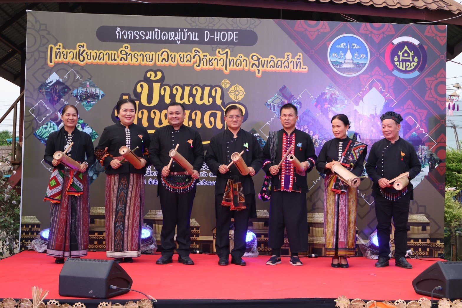 เมื่อเวลา 18.00 น. วันที่ 23 มี.ค.67 ณ บริเวณศูนย์วัฒนธรรมคนไทดำ บ้านนาป่าหนาด ต.เขาแก้ว อ. เชียงคาน จ.เลย นายชัยพจน์ จรูญพงศ์ ผู้ว่าราชการจังหวัดเลย พร้อมด้วย นายอภินันต์ สุวรรณโค นายอำเภอเชียงคาน นายวิลาศ บุญโต พัฒนาการจังหวัดเลย หัวหน้าส่วนราชการ ร่วมกันตีกะลอเปิดกิจกรรม “เที่ยวเชียงคานสำราญเลย ยลวิถีไทดำสุขเลิศล้ำที่บ้านนาป่าหนาด” ภายใต้โครงการส่งเสริมการเรียนรู้ที่นักท่องเที่ยวลงมือปฏิบัติ (D-HOPE) โดยมี หัวหน้าส่วนราชการ ชาวบ้านนาป่าหนาด อำเภอเชียงคาน ร่วมกิจกรรม