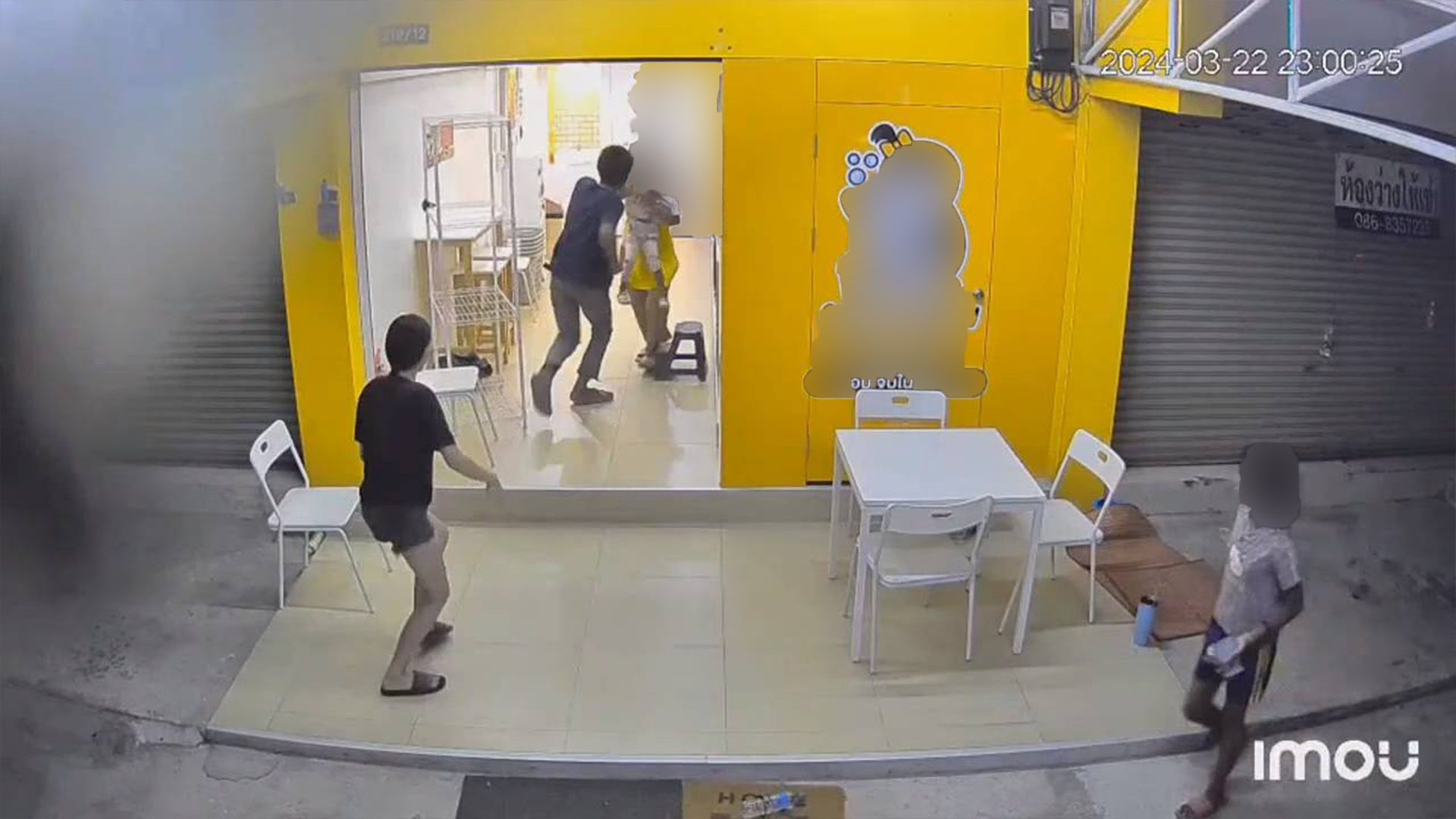 โดยเหตุเกิดเวลาประมาณ 22 นาฬิกาเศษ คืนวันที่ 22 มีนาคม ที่ผ่านมา ภายในร้านซักผ้า หมู่ 7 ตำบลเชิงเนิน อำเภอเมืองระยอง ซึ่งกล้งวงจรปิดบันทึกภาพ ขณะที่ นางสาวจริยาภรณ์ อายุ 26 ปี นั่งอุ้มบุตรสาวอายุ 2 ปี และบุตรสาว อายุ 8 ปี นั่งอยู่ หน้าร้าน รวมทั้งนางสาวพลอยไพลิน หลานสาวสามี นั่งอยู่ด้วย ระหว่างนั้นนายนพชัย อายุ 26 ปี ซึ่งเป็นสามี ได้เดินเข้ามาหาพร้อมกับชักมีดทำครัว ยาวประมาณ 8 นิ้ว ออกมาข่มขู่จะทำร้ายนางสาวจริยาภรณ์ สร้างความตกใจให้กับนางสาวจริยาภรณ์ ซึ่งเป็นภรรยา และบุตรสาว อายุ 8 ปี ที่เห็นเหตุการณ์ จากนั้นนางสาวพลายไพลิน จึงวิ่งเข้าไปขัดขวาง พร้อมกับบอกให้นายนพชัย กลับออกไป ทำให้นายนพชัย ได้สติ และเดินออกจากร้านไป