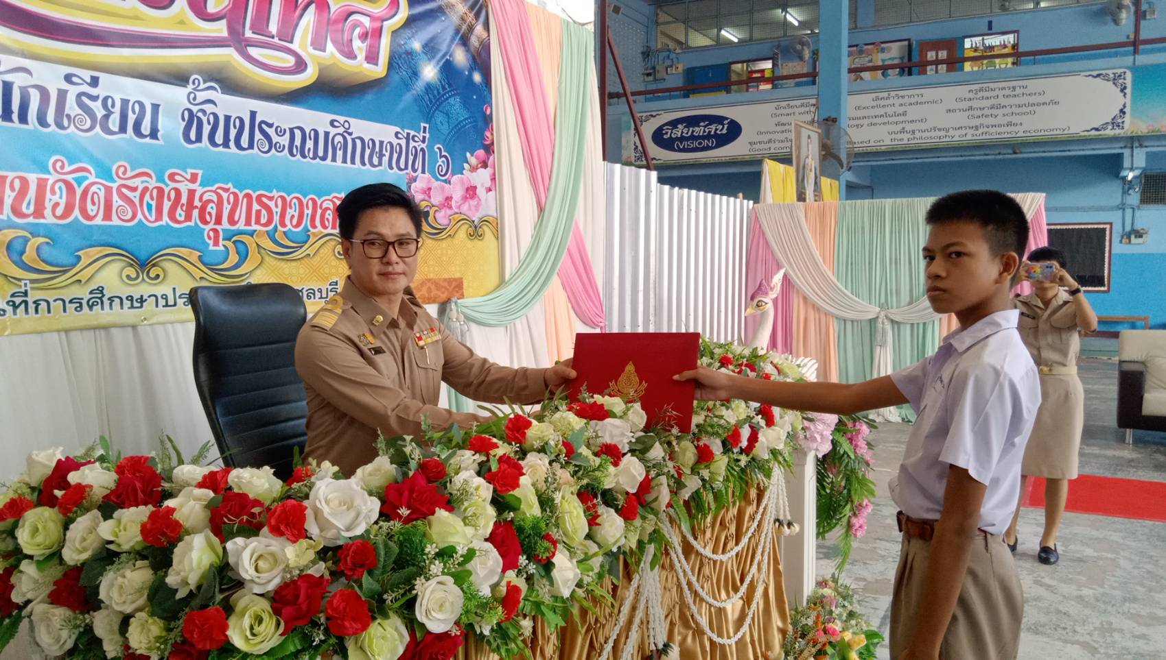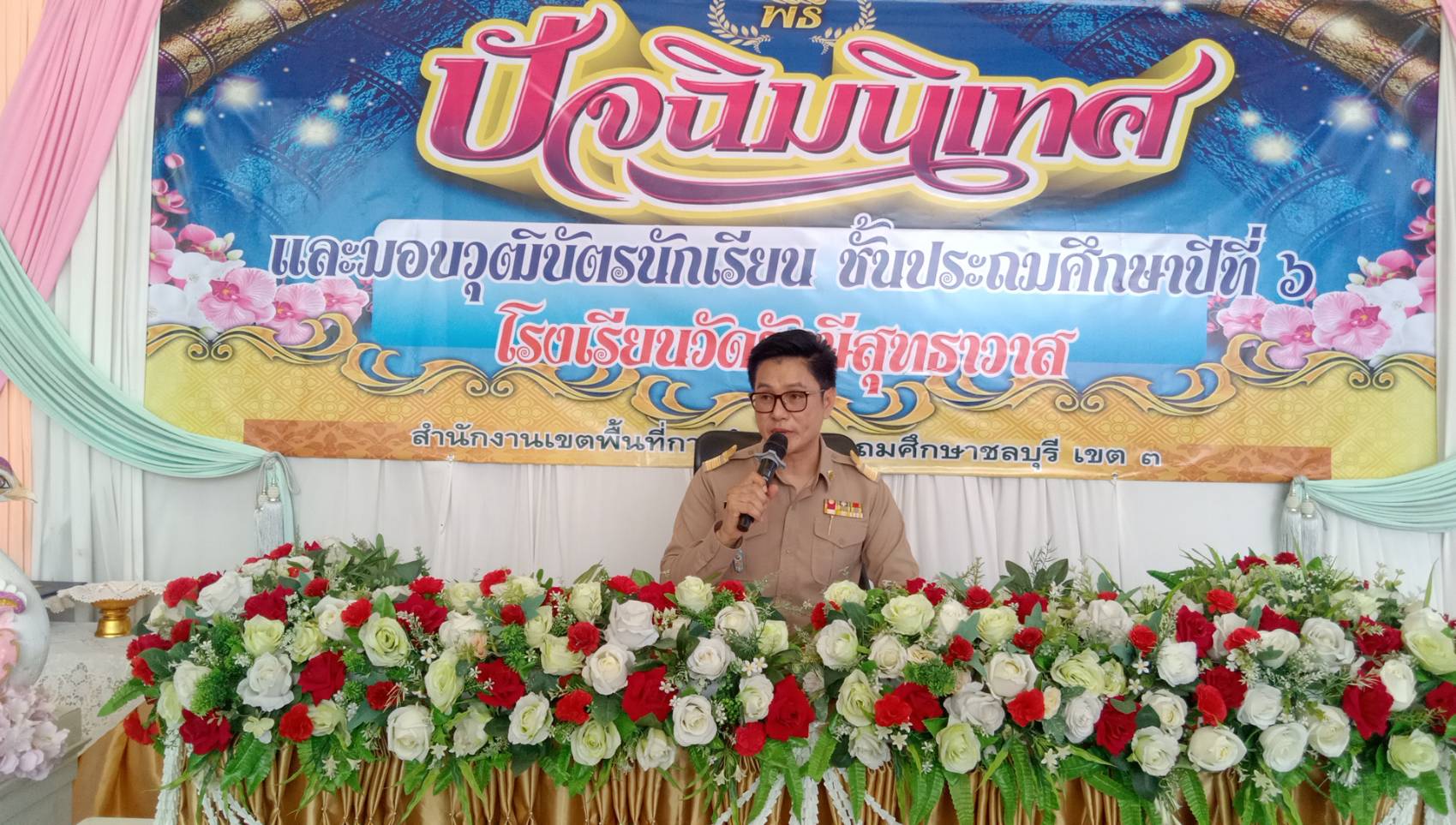 เมื่อเวลา 9.00 นวันที่ 25 มีนาคม 2567 ที่โรงเรียนวัดรังสีสุทธาวาส หมู่ 2 ตำบลสุรศักดิ์ อำเภอศรีราชา จังหวัดชลบุรีจัดงานปัจฉิมนิเทศ นักเรียนชั้น ป.6โดยมีผู้สำเร็จการศึกษาชั้นประถมทั้งสิ้นจำนวน 110 คน ณ อาคารเอนกประสงค์ โรงเรียนวัดรังษีสุทธาวาส อำเภอศรีราชา จังหวัดชลบุรี