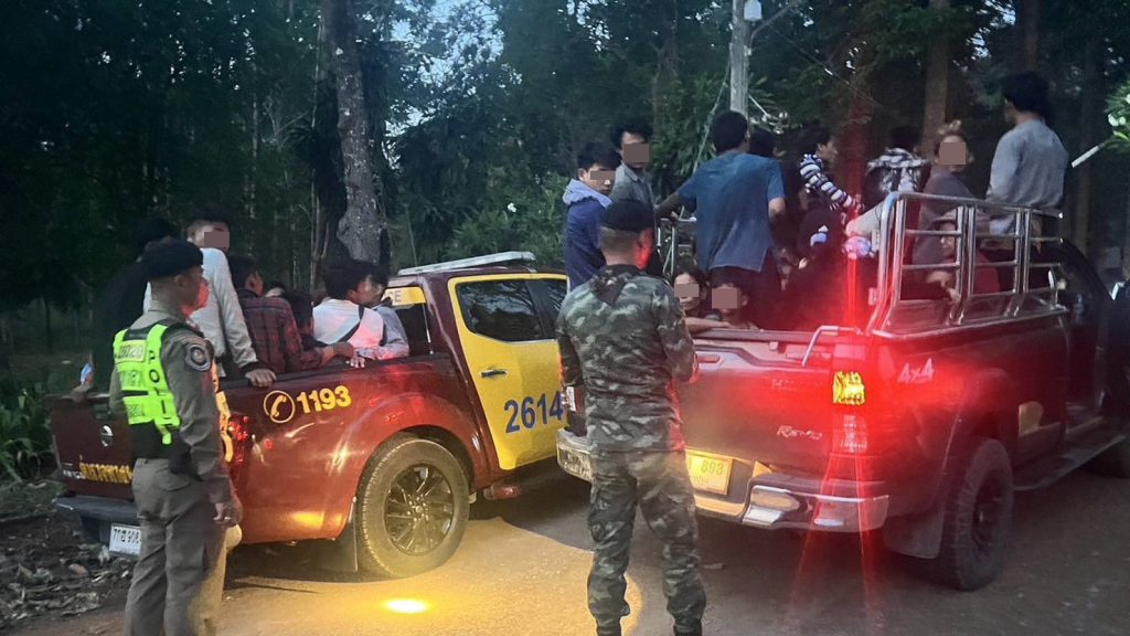 เจ้าหน้าที่ ตำรวจ ทหาร ฝ่ายปกครอง สนธิกำลังไล่ล่าขบวนการลักลอบขนแรงงานต่างด้าว หลังขับรถแหกด่านความมั่นคงอำเภอ ทองผาภูมิ จังหวัดกาญจนบุรี เจ้าหน้าที่สกัดจับได้สี่จุดจับแรงงานเถื่อนชาวเมียนมารวม 73 คน ผู้ติดตามอีก 14 คน พร้อมรถยนต์ของกลาง 5 คัน