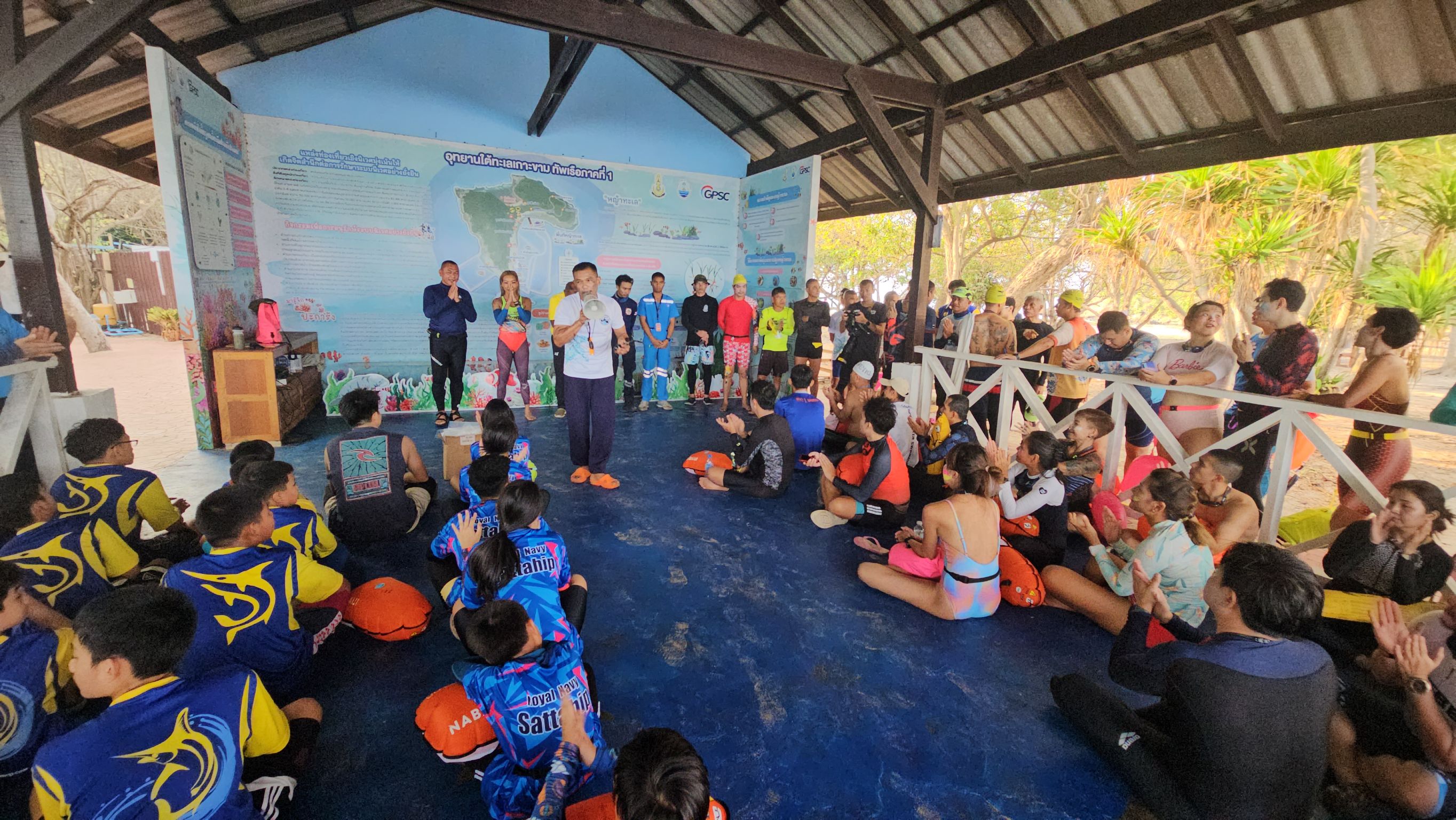ในช่วงปิดภาคเรียนเด็กๆ และเยาวชนนักว่ายน้ำจากสโมสรต่างๆ อาทิ สโมสรว่ายน้ำวิชั่น สโมสรว่ายน้ำราชนาวีสัตหีบ และนักว่ายน้ำเพื่อการอนุรักษ์ (Open water Swimming) ภาคประชาชน ตลอดจนผู้ปกครองและจิตอาสาเกือบ 200 คน ได้มารวมตัวกันใช้เวลาว่างให้เกิดประโยชน์ ร่วมทำกิจกรรม รณรงค์สร้างความตระหนักในการว่ายน้ำรอบเกาะขาม เพื่อการอนุรักษ์ และเก็บขยะ เพื่อกระตุ้นและปลูกฝังการอนุรักษ์ระบบนิเวศวิทยาทางทะเล เต่าทะเล สัตว์น้ำทะเล และปะการัง โดยใช้ทักษะความเป็นเลิศด้านการว่ายน้ำที่ถนัดว่ายน้ำรอบเกาะขาม แสมสาร อ.สัตหีบ จ.ชลบุรี ระยะทาง 3 กม. ภายใต้โครงการ “เกาะขาม รักษ์เต่า รักษ์ทะเล ลดขยะ” ณ อุทยานใต้ทะเลเกาะขามแสมสาร สัตหีบ