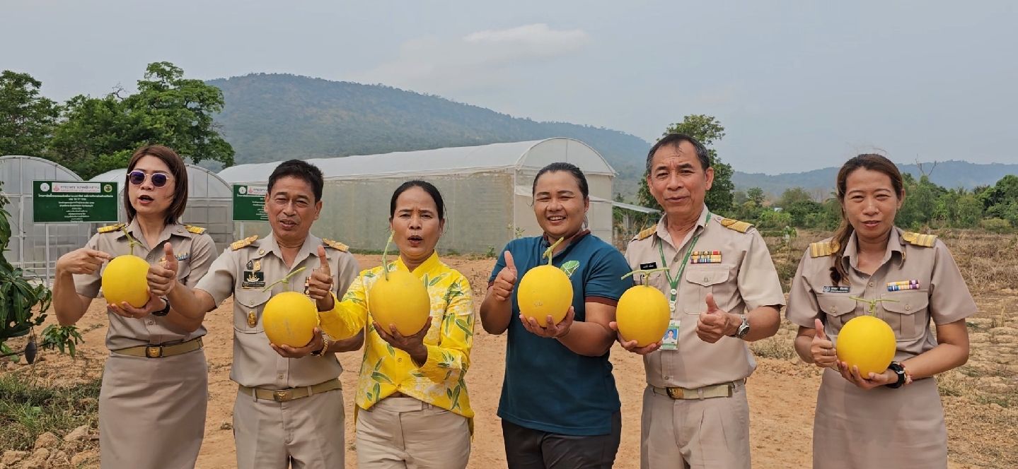 และเช้าวันนี้ที่ 27 มี.ค.67 น.ส.เอื้อนจิต ช่วยนก พาณิชย์จังหวัดสระแก้ว พร้อมด้วยนายประจักร์ ประสงค์สุข เกษตรจังหวัดสระแก้ว ได้เดินทางมาตรวจเยี่ยมที่บ้านเลขที่ 208 ม.9 บ้านหนองผักแว่น ต.ทัพราช อ. ตาพระยา จ.สระแก้ว ซึ่งเป็นพื้นที่ปรับเปลี่ยน จากทุ่งนามาเป็นสวนเมล่อน โดยได้พบกับ น.ส.กาญจนาวดี ดวงภักดีรัมย์ อายุ 40 ปี และนายโชติพัทร์ ดาศรี สองสามีภรรยา เกษตรกร ที่เปลี่ยนวิถีชีวิตจากทำนาปลูกข้าวมาเป็นชาวสวนปลูก เมล่อน โดย น.ส.กาญจนาวดีฯ เผยว่าเดิมอดีตที่ดินตรงนี้เป็นทุ่งนา ตนก็มีอาชีพทำนา แต่ก็ไม่ประสบความสำเร็จเพราะพื้นดินบริเวณนี้ อยู่ติดกับละลุ เป็นที่ดินปนทรายไม่อุ้มน้ำ อีกทั้ง อ.ตาพระยา จ.สระแก้ว เป็นพื้นที่แห้งแล้งประสบภัยแล้งซ้ำซากมาทุกปี อีกทั้งราคาข้าวก็ตกต่ำจึงชวนสามี ไปปรึกษากับ เกษตรจังหวัดสระแก้ว และ จนท. เกษตรฯได้แนะนำและสนับสนุนให้ตนทดลองปลูกเมล่อน ซึ่งเป็นผลไม้ที่มีราคาดีและกำลังเป็นที่ต้องการของตลาด จึงได้กลับมาทำโรงเรือนปลูกเมล่อนฯตามคำแนะนำของ จนท. เกษตรฯ โดยได้เลือกสายพันธุ์” จันทร์ฉาย “ซึ่งมีรสชาติที่อร่อยและมีความต้องการของตลาดมีราคาดี ถึง กก.ละ120 บาท เลยทีเดียว โดยใช้เวลาปลูกประมาณ 65 วัน เมล่อน ก็สามารถเก็บผลขายได้แล้ว ลูกค้าส่วนใหญ่ก็จะเป็นลูกค้า ในพื้นที่และพื้นที่ไกล้เคียง โดยเฉพาะในตลาดออนไลน์ มียอดสั่งจองกันจำนวนมาก สร้างรายได้ให้กับตนและครอบครัวเป็นอย่างมาก ดีกว่าทำนาปลูกข้าวเยอะเลย
