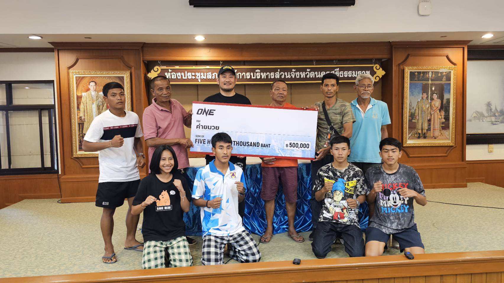 เมื่อเร็วๆนี้ ที่ห้องประชุมชั้น 5 สนง.อบจ.นครศรีธรรมราช นายชาตรี ศิษย์ยอดธง” CEO One Championship พร้อมผู้บริหารทีมงานONE รุดแจกเงินสนับสนุนให้กับค่ายมวย 13ค่ายใน14จังหวัดภาคใต้ ด้วยตัวเอง ทั้งนี้หวังพัฒนายกระดับศักดิ์ศรีมวยไทย คนไทย สู่การยอมรับศักยภาพระดับโลก โดยมีนายชัยรัตน์ รัตนมาศ รองนายก อบจ.นครศรีธรรมราช พร้อมน้องๆ เยาวชน หัวหน้าค่ายมวย และคนมวย ใน14จังหวัดภาคใต้ให้การต้อนรับ