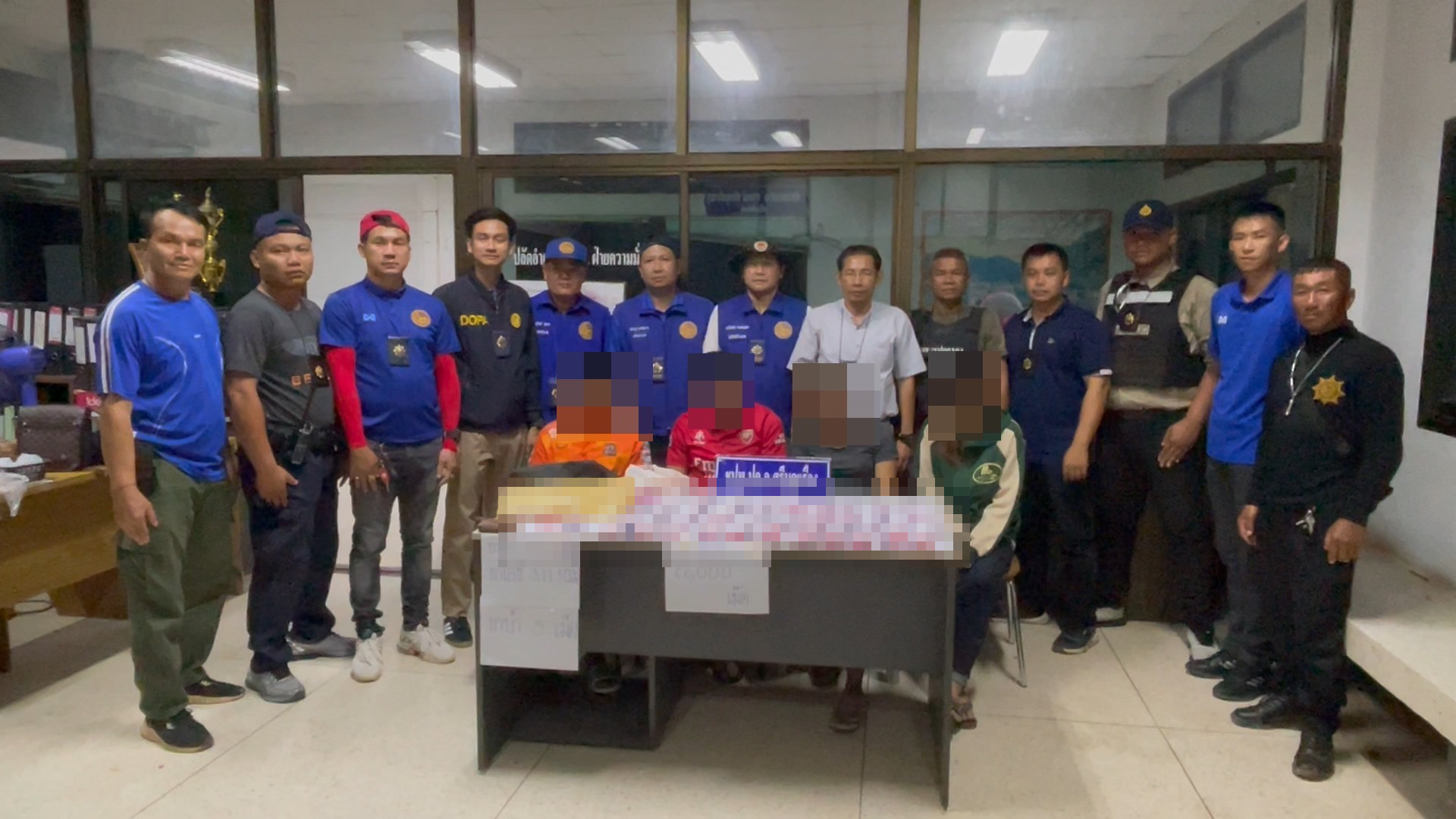 เมื่อวันที่ 31 มี.ค.2567 ผู้สื่อข่าวรายงานว่า นายสุวิทย์ จันทร์หวร ผู้ว่าราชการจังหวัดหนองบัวลำภู ได้สั่งการให้ทุกพื้นที่ในเขตจังหวัดหนองบัวลำภู ให้ออกหาข่าวและจับกุมผู้ที่ยุ่งเกี่ยวกับยาเสพติด ต่อมา ชุดปฎิบัติการพิเศษฝ่ายปกครองจังหวัดหนองบัวลำภู นำโดย นายประสิทธิ์ มหาวงศ์ ผู้ช่วยป้องกันจังหวัดหนองบัวลำภู ,นายธวัชชัย วงษ์แสน ปลัดอำเภอฝ่ายความมั่นคงอำเภอศรีบุญเรือง ,นายชยังกูร เสริมสุข ปลัดอำเภอฝ่ายความมั่นคงอำเภอนากลาง พร้อมเจ้าหน้าที่อาสารักษาดินแดน ( อส.) ร่วมกันจับกุม 1.นายจิระยุทธ ฯ อายุ 26 ปี ที่อยู่ ต.สุวรรณคูหา อ.สุวรรณคูหา จ.หนองบัวลำภู 2. นายแสงสุรีย์ ฯ อายุ 27 ปี ที่อยู่ ต.นาดี อ.สุวรรณคูหา จ.หนองบัวลำภู 3.นางสาวเกศรา ฯ อายุ 32 ปี ที่อยู่ ต.โนนเมือง อ.นากลาง จ.หนองบัวลำภู 4.นางสาวภริดา ฯ อายุ 21 ปี ที่อยู่ ต.นากลาง อ.นากลาง จ.หนองบัวลำภู พร้อมผลตรวจปัสสาวะเป็นสีม่วง ของกลางยาบ้ารวมทั้งหมด 22,375 เม็ด ( สองหมื่นสองพันสามร้อยเจ็ดสิบห้าเม็ด ) ตรวจยึดรถจักรยานยนต์ 4 คัน รถยนต์เก๋งโตโยต้า สีบรอนซ์ 1 คัน สามารถจับกุมผู้ต้องหาได้ที่ ตำบลโนนม่วง อ.ศรีบุญเรือง จ.หนองบัวลำภู และตำบลนากลาง อ.นากลาง จ.หนองบัวลำภู