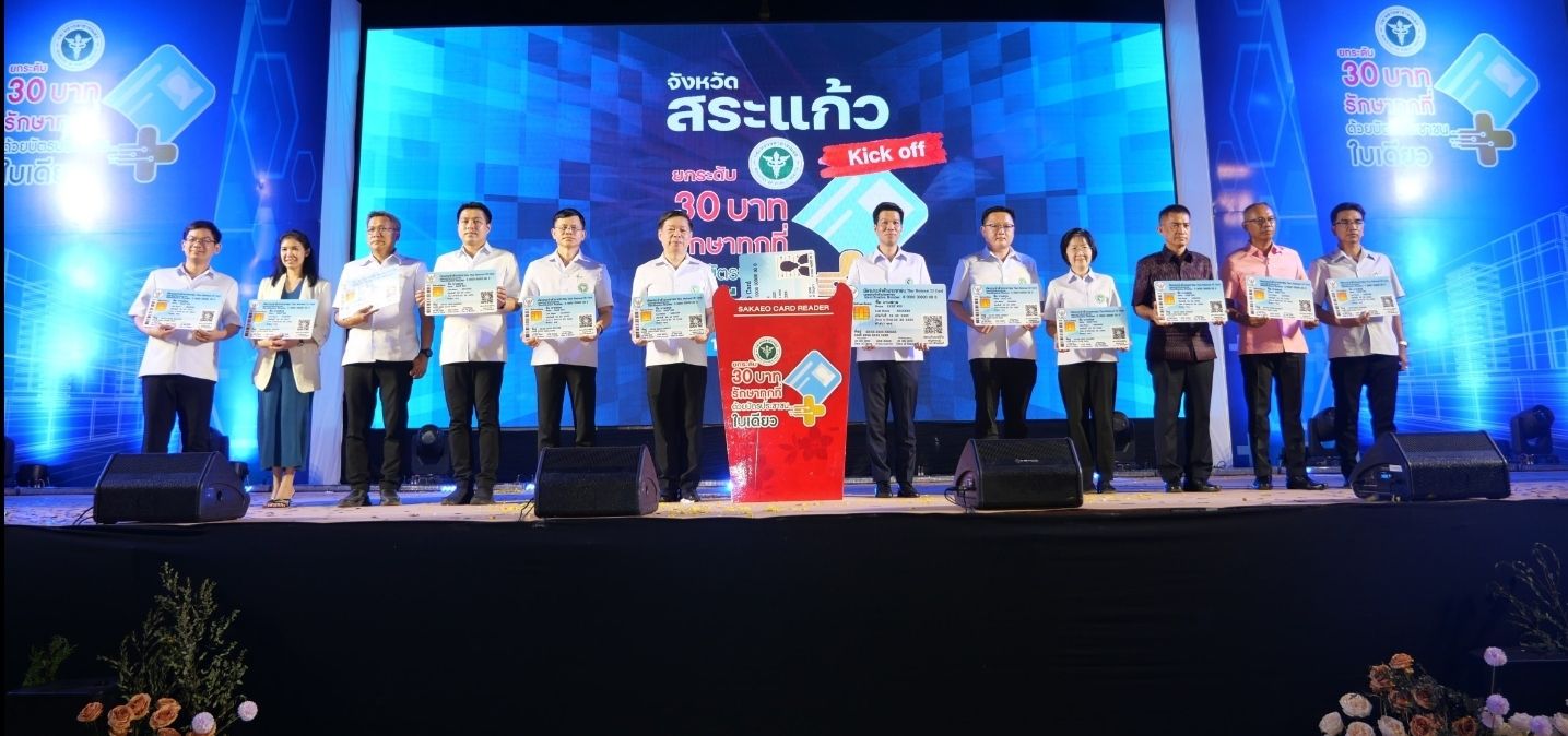 ผู้สื่อข่าวรายงาน นายสุรชาติ เทียนทอง เลขานุการรัฐมนตรีว่าการกระทรวงสาธารณสุข เสียบัตรประชาชน ลงสู่กล่อง Card Reader จำลอง ในพิธี kick off นโยบาย ยกระดับ 30 บาทรักษาทุกที่ด้วยบัตรประชาชนใบเดียว ณ อาคารโดมหน้าสำนักงานพื้นที่การศึกษาสระแก้ว เขต 2 อำเภออรัญประเทศ จังหวัดสระแก้ว โดยมีผู้เข้าร่วมกิจกรรมประกอบ ผู้ช่วยผู้ตรวจราชการกระทรวงสาธารณสุข เขตสุขภาพที่ 6 ผู้อำนวยการหลักประกันสุขภาพแห่งชาติ เขต 6 ระยอง นายแพทย์สาธารณสุขจังหวัดทั้ง 8 จังหวัด ผู้อำนวยการศูนย์สนับสนุนบริการสุขภาพที่ 6 ผู้อำนวยการศูนย์สุขภาพจิตที่ 6 ผู้อำนวยการศูนย์วิทยาศาสตร์การแพทย์ที่ 6 ชลบุรี ผู้อำนวยการศูนย์อนามัยที่ 6 ชลบุรี ผู้อำนวยการสำนักงานป้องกันควบคุมโรคที่ 6 ชลบุรี ปลัดจังหวัดสระแก้ว ผู้อำนวยการโรงพยาบาลศูนย์ ผู้อำนวยการโรงพยาบาลทั่วไป ผู้อำนวยการโรงพยาบาลชุมชน หัวหน้าส่วนราชการในจังหวัดสระแก้ว สาธารณสุขอำเภอ โรงพยาบาลส่งเสริมสุขภาพตำบล บุคลากรสาธารณสุข ผู้นำชุมชน ผู้นำท้องถิ่น อสม. สื่อมวลชนและประชาชน รวมประมาณ 1,400 คน