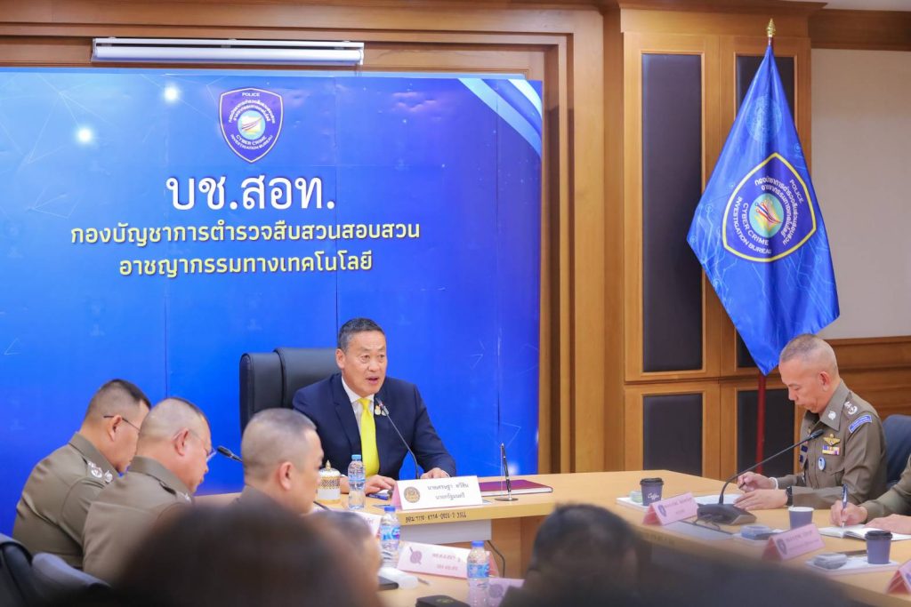 วันนี้ 1 เม.ย.67 เวลา 15.00 น. นายเศรษฐาทวีสิน นายกรัฐมนตรีและรัฐมนตรีว่าการกระทรวงการคลัง เดินทางมาตรวจเยี่ยมและมอบนโยบายการปฏิบัติหน้าที่ กับข้าราชการตำรวจกองบัญชาการตำรวจสืบสวนสอบสวนอาชญากรรมทางเทคโนโลยี (บช.สอท.) โดยมี พล.ต.อ.กิตติ์รัฐ พันธุ์เพ็ชร รองผู้บัญชาการตำรวจแห่งชาติ รักษาราชการแทนผู้บัญชาการตำรวจแห่งชาติ (รอง ผบ.ตร.รรท.ผบ.ตร.) พร้อมด้วย พล.ต.อ.ธนา ชูวงศ์ รอง ผบ.ตร. , พล.ต.ท.ธัชชัย ปิตะนีละบุตร ผู้ช่วย ผบ.ตร. , พล.ต.ท.วรวัฒน์ วัฒน์นครบัญชา ผบช สอท. , รอง ผบช.สอท. , ผบก.สอท. เข้าร่วมประชุมรับมือบนโยบาย ณ ห้องประชุมมหาเมฆ ชั้น 2 บช.สอท. เมืองทองธานี